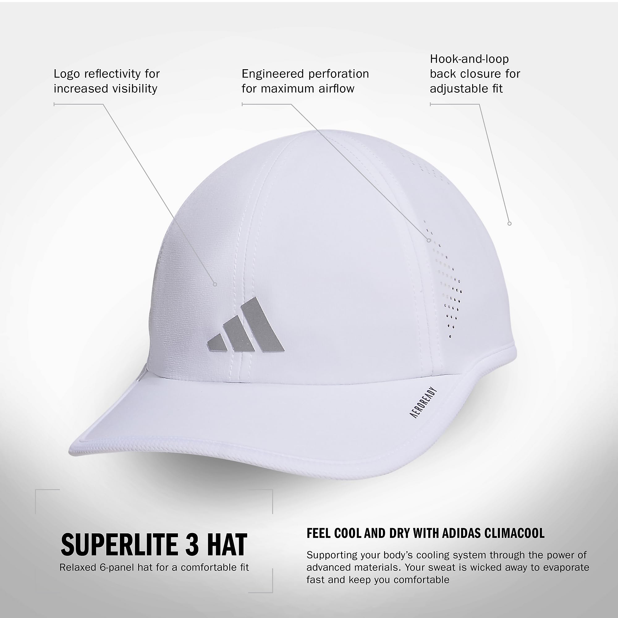 Description From long runs to laid-back weekends, this adidas hat keeps you comfortably under shade. Made from lightweight fabric that's perforated for an airy feel, the relaxed workout hats for women help you stay cool and dry, whatever your plans. Adjust the fit to your liking and you're ready to go. This womens hat has reflective elements for design and decoration reasons only. It is not intended or suitable for the use as Personal Protective Equipment PPE (e.g. to protect by enhanced visibility) and would not meet mandatory PPE standards