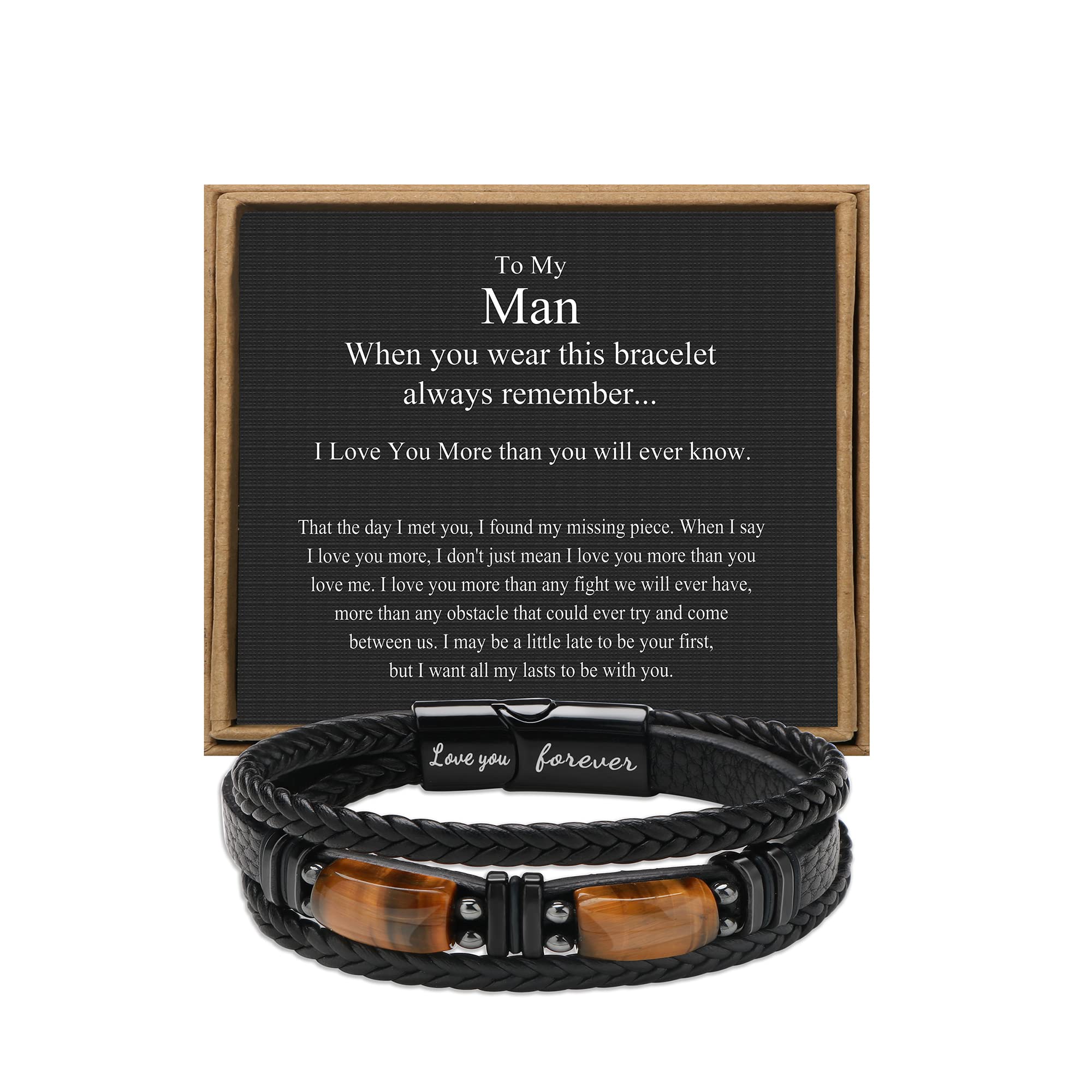 🎁【Ideal Gifts for Man】The leather bracelet for men comes with a meaningful wish card and a cute box. Ready to treat your man for Birthday, Anniversary, Christmas, Valentine’s Day, Wedding, Halloween, Thanksgiving Day, and any special occasion gifting or just a surprise to let him know that you will love him forever