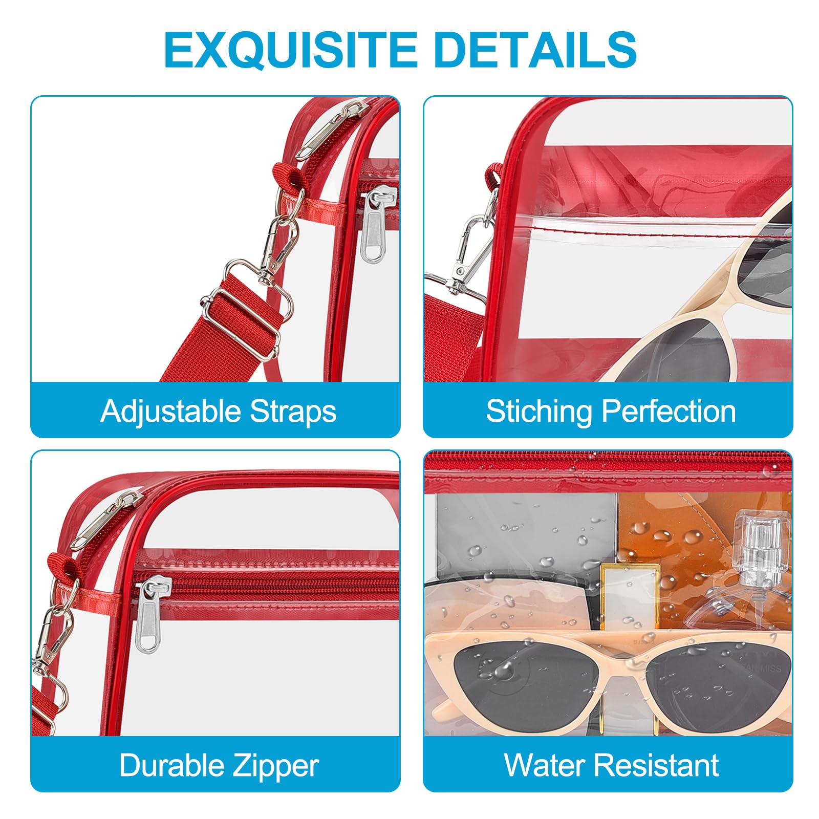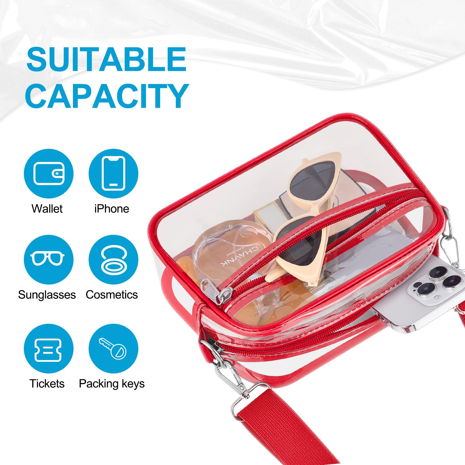 [Water-Resistant PVC Material] Made of durable 0.4mm thick PVC, this small mini clear bag is resistant to deformation and cracking. Its excellent water-resistant properties keep your belongings dry. Note: Avoid exposure to large amounts of water or heavy rain