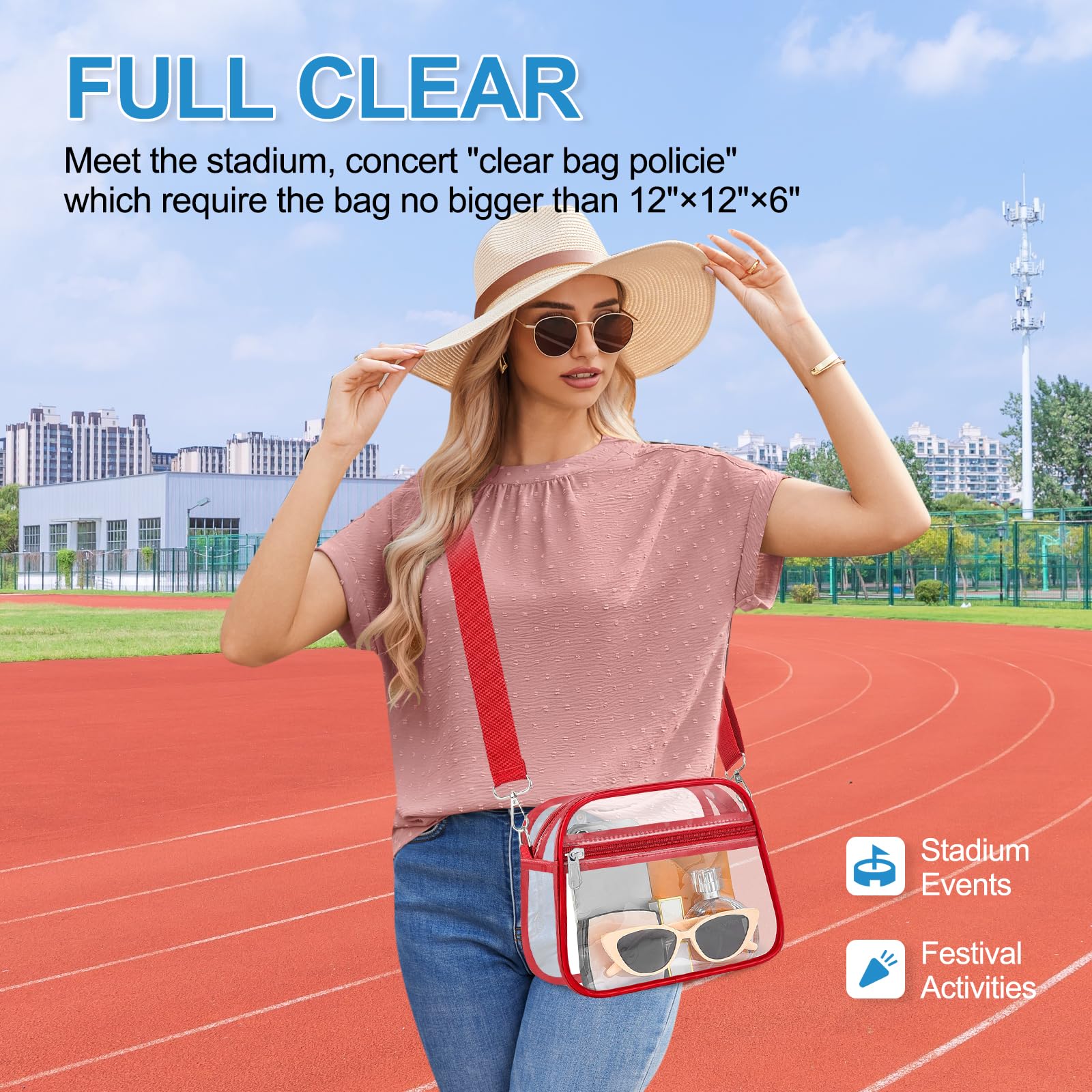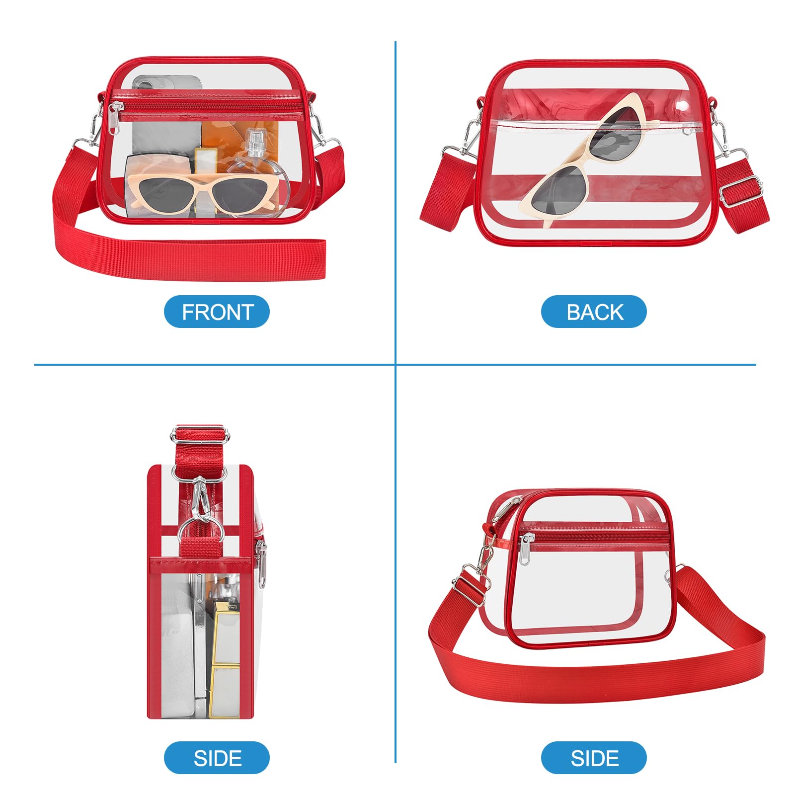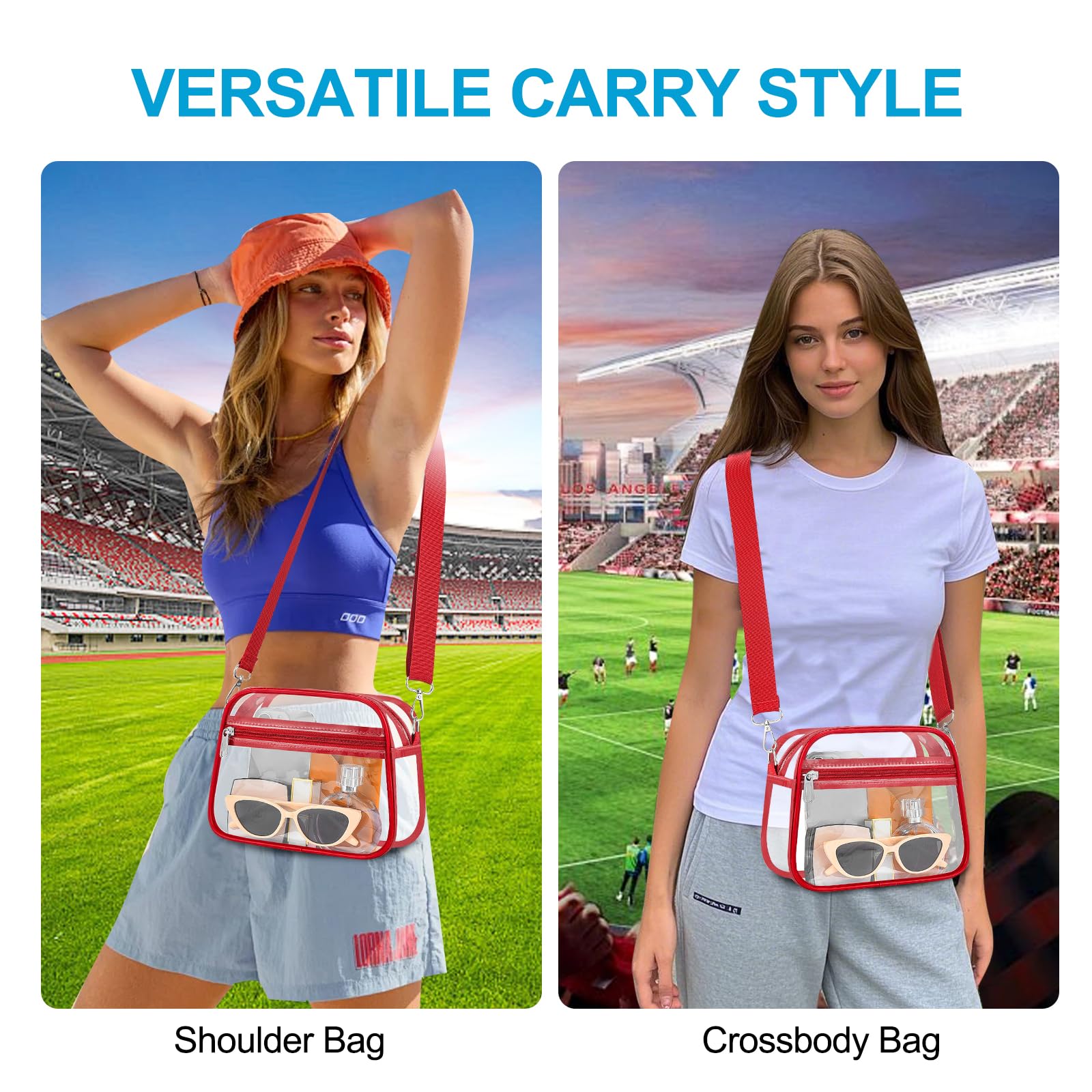 [Practical Storage Capacity] This crossbody bag features a main compartment that can hold a small wallet and phone, a front zip pocket for keys, lipstick, tissues, and sunglasses, plus an inner pocket for cash, cards, and tickets—making it a must-have accessory for sports events