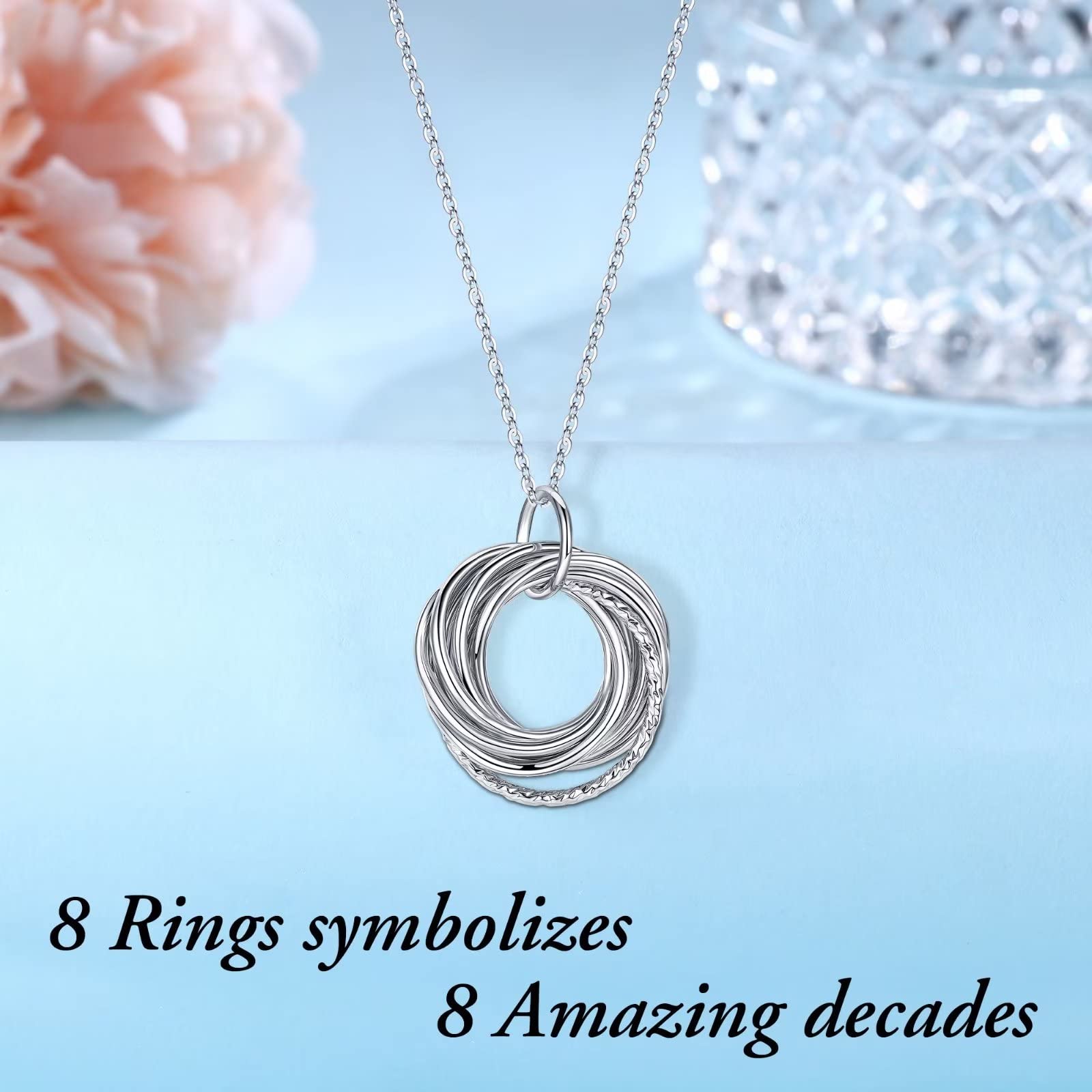 80TH BIRTHDAY GIFTS FOR WOMEN: Help her celebrate her milestone 80th birthday with the exquisite and memorable gifts. This 80th birthday necklace has eight rings, each ring represents ten years, the rings are intertwined and hangs from a strong delicate chain. Circles symbolize infinite love, strength, protection and unity. 8 rings for 8 fabulous decades, 80th birthday gift idea for grandma, mom, sisters, friends and other person you love.