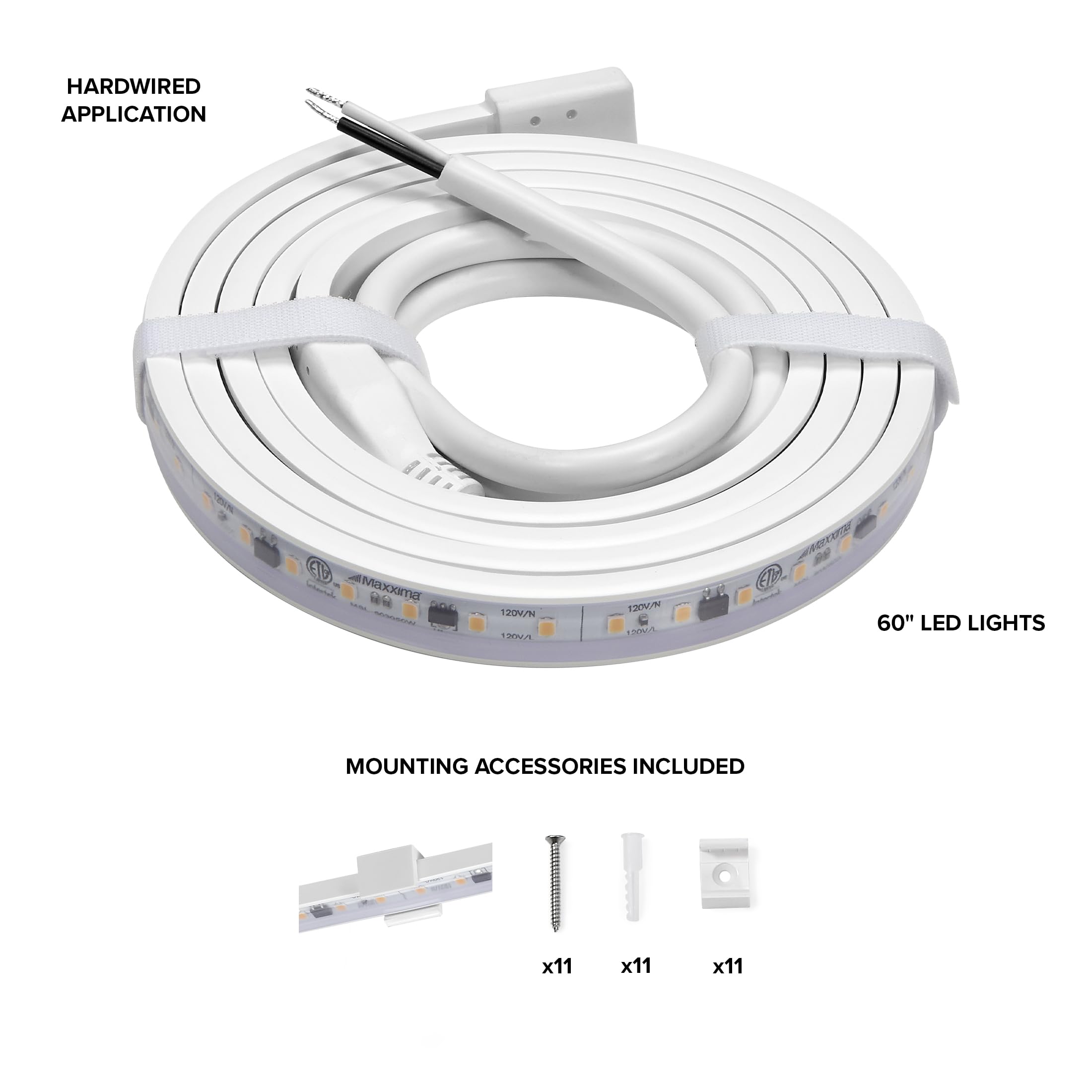 Effortless Integration- Seamlessly integrate our 60” hardwired LED strip light in your cabinetry for a sleek and modern lighting solution that enhances the aesthetic appeal of your space. Showcasing 90 CRI for proper color rendering.