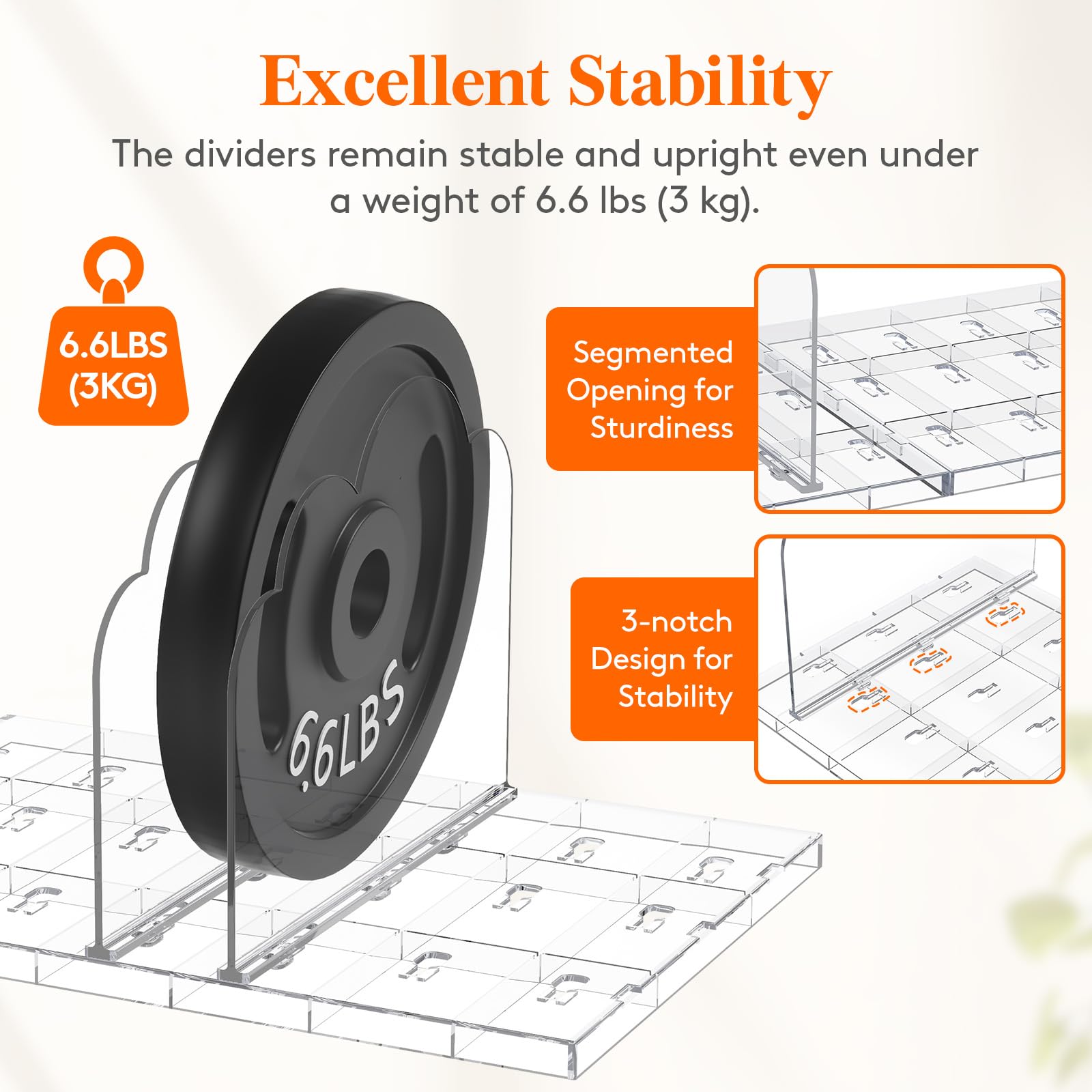 Easy Install: no drilling or tools needed, protecting your closet from damage, making installation quick and hassle-free. Simply snap the dividers into the base upon receiving the product, and it’s ready to use
