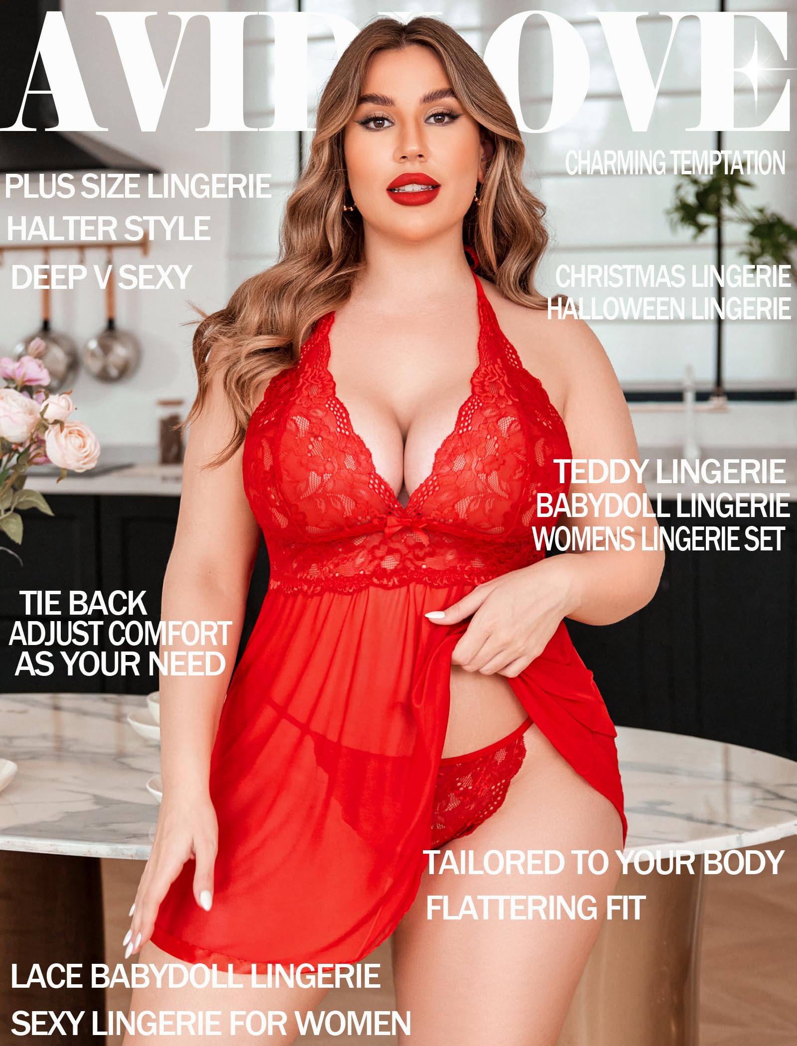 Style: plus size babydoll for women.plus size women lace lingerie set, v neck chemise, halter lingerie plus size, sexy lingerie for women plus size, lace mesh lingerie sleepwear nightie, see thru lingerie for women, plus size lingerie for women for sex.