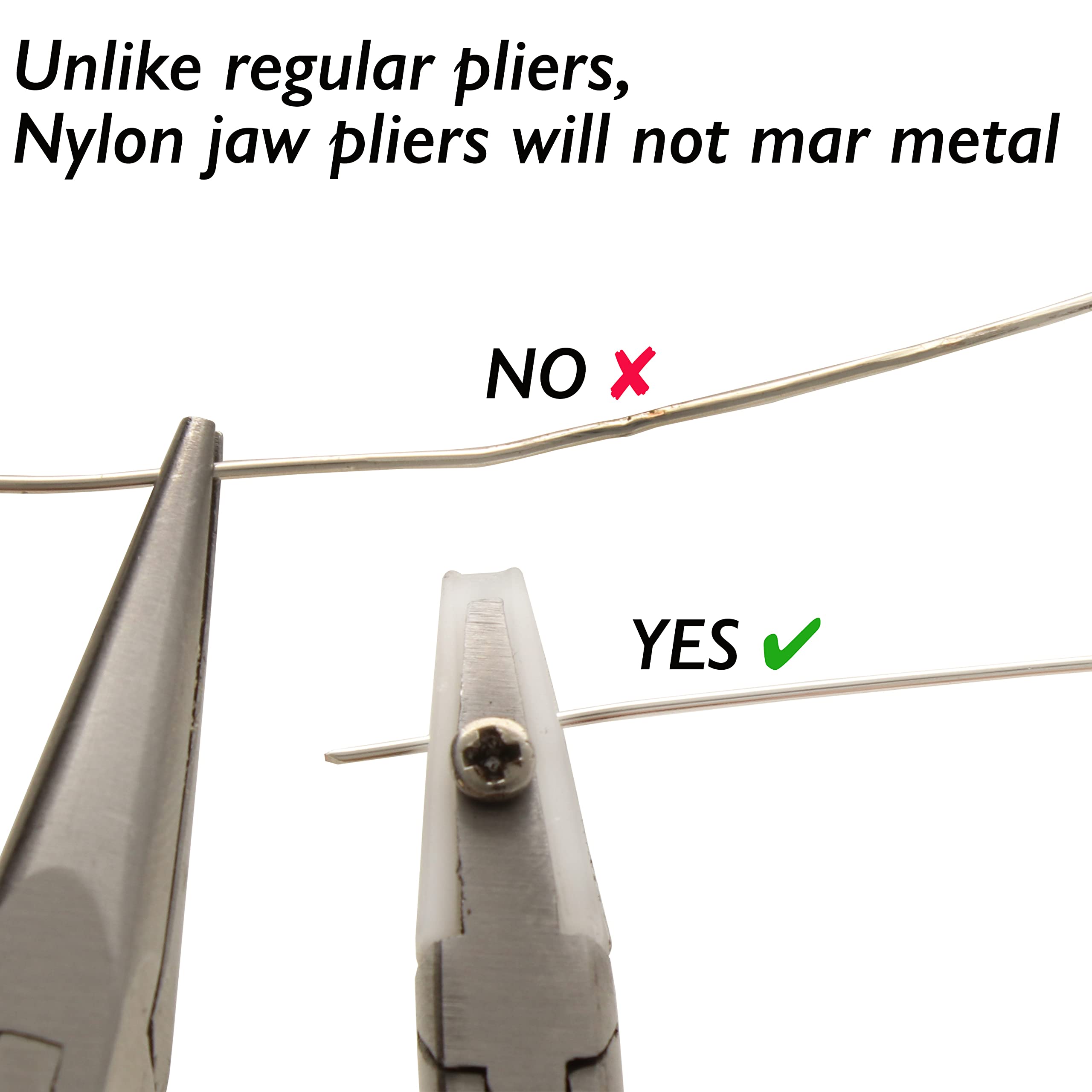 RIGHT TOOL FOR THE RIGHT JOB: With the nylon jaws, you won't have to worry about scratching or marring metal surfaces, and they can even be replaced over time. A set of replacement jaws is included with each plier. The pliers are made of box joint construction, these pliers are built to last!