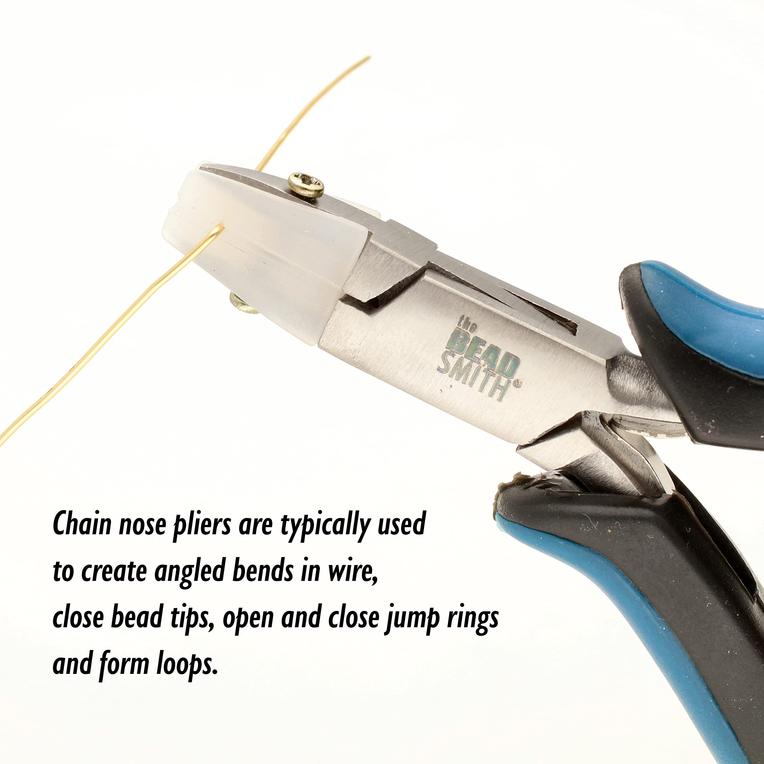 CHAIN NOSE PLIER: This innovative design features two chain nose jaws which are used to create bends in wire, close bead tips, open and close jump rings and form loops. The pliers measure 5 inches (127mm) and are ideal for light to medium work.