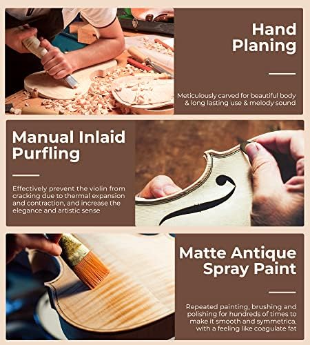 【Visible beauty, tangible quality】The high-end full-size violin is carefully hand-carved from good spruce and maple wood, which is sturdy and durable. The unique natural maple wood grain is matched with the matte antique color spray paint, which is more artistic and classical. The extraordinary appearance and quality of the violin make it not only a musical instrument but also a work of art, perfect for a violin player or learner