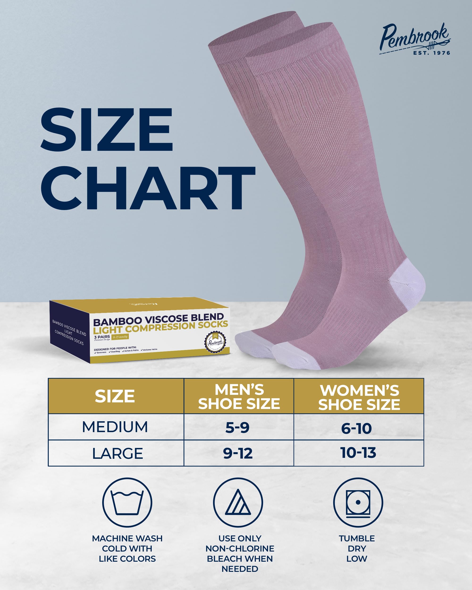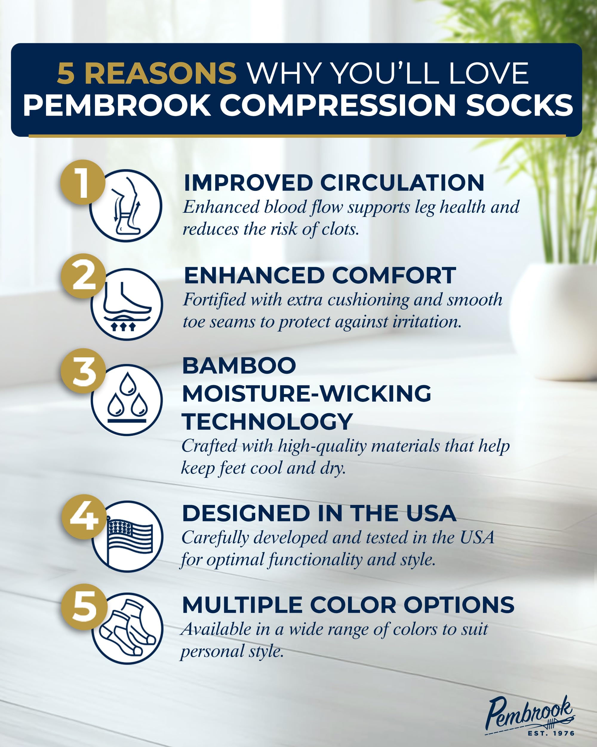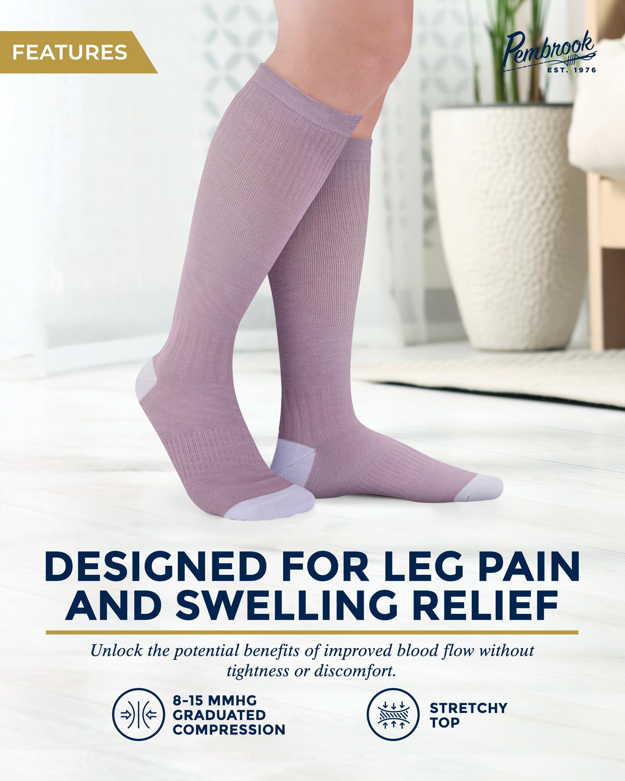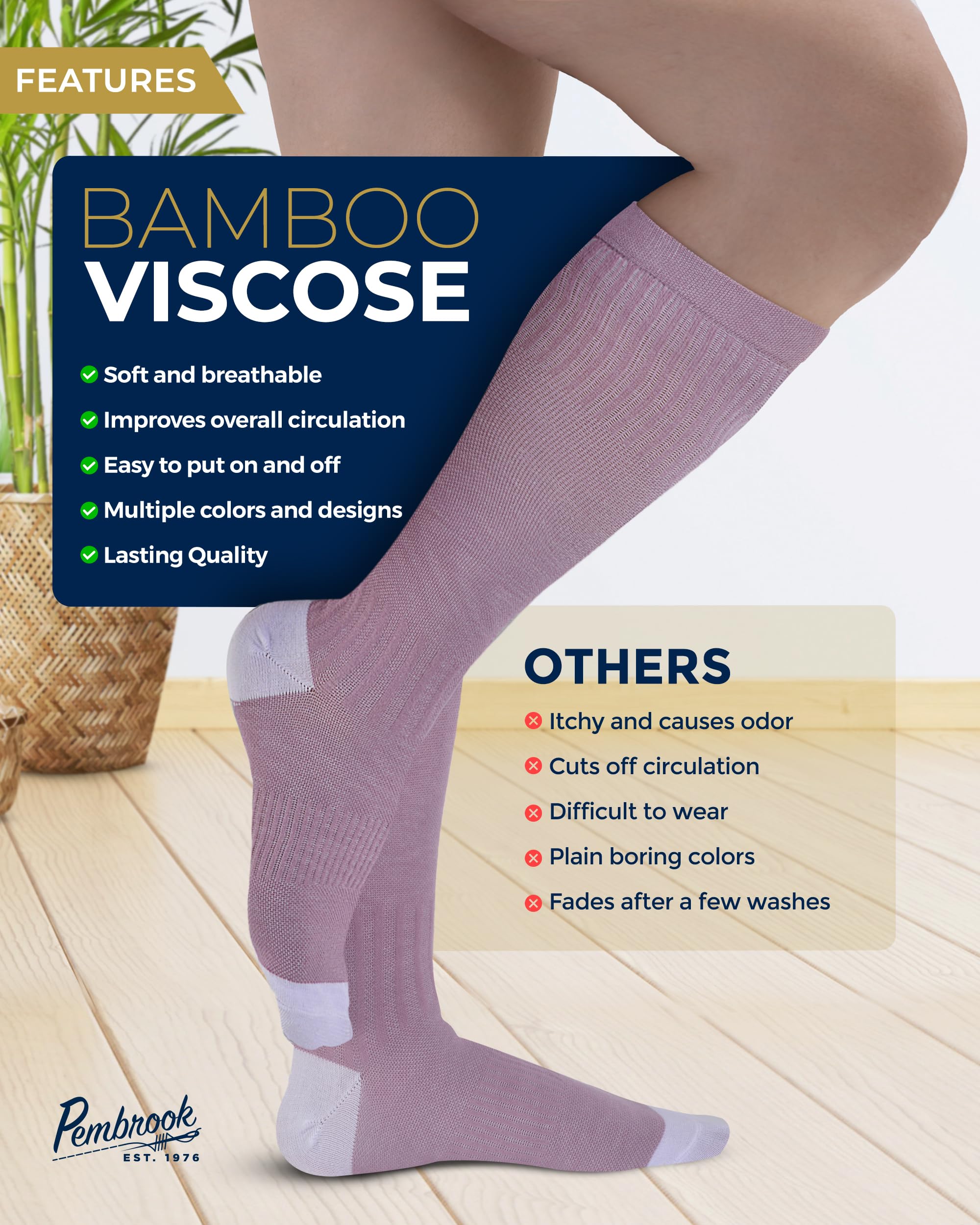Premium Material - Pembrook mens and womens light compression socks feature viscose derived from bamboo, ensuring enduring freshness. With moisture-wicking and temperature regulation, these socks can withstand any climate.