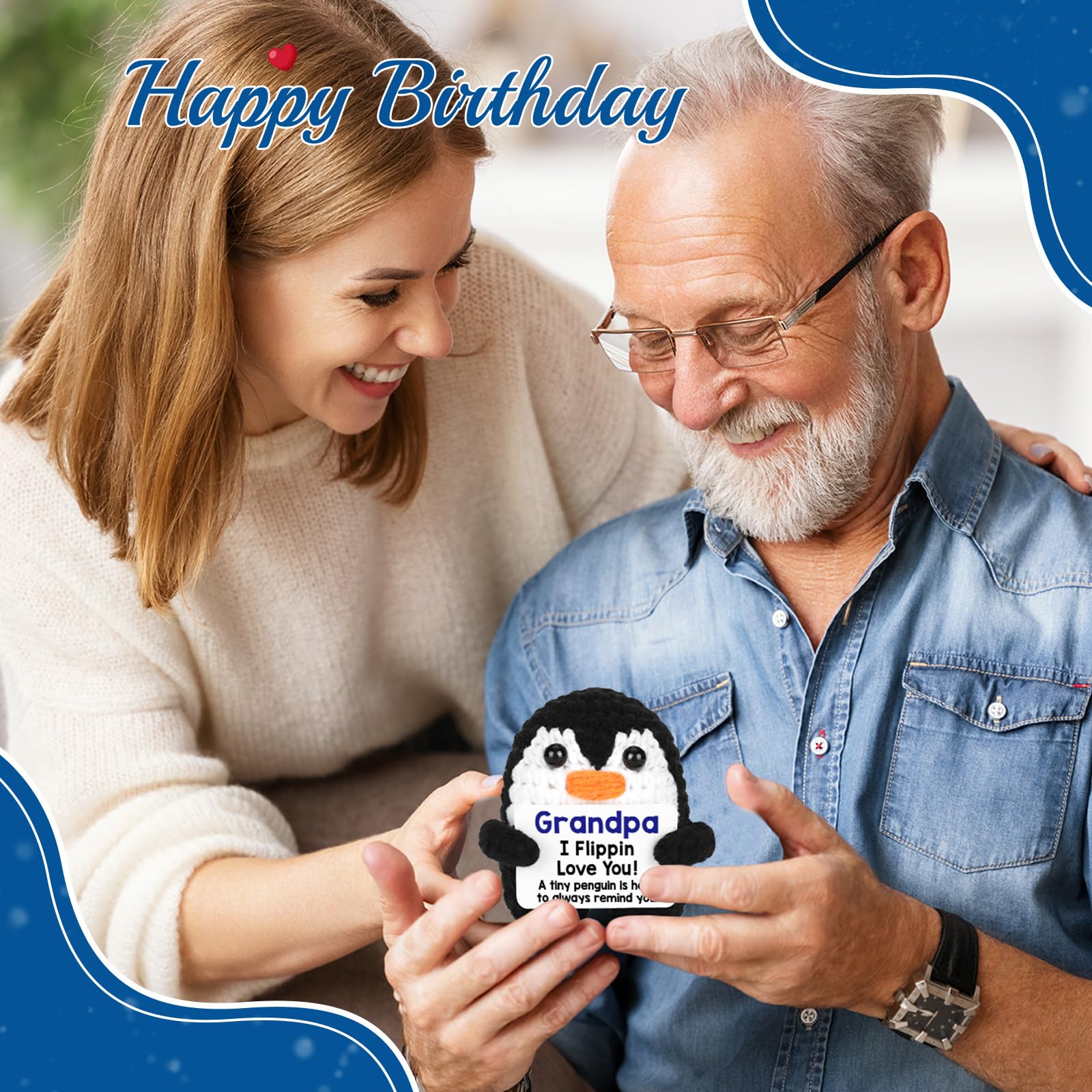 Grandpa Birthday Gifts Ideas: The mini - designed crochet penguin is highly portable and can be displayed with ease anywhere. Whether your grandpa is reminiscing about the past or enjoying the present moment, this tiny penguin will be there like a loyal companion, staying by his side. It's a reminder that your love is always with him, sharing in his every memory, joining in his happiness, and offering comfort during lonely times, constantly assuring him that he'll never be alone