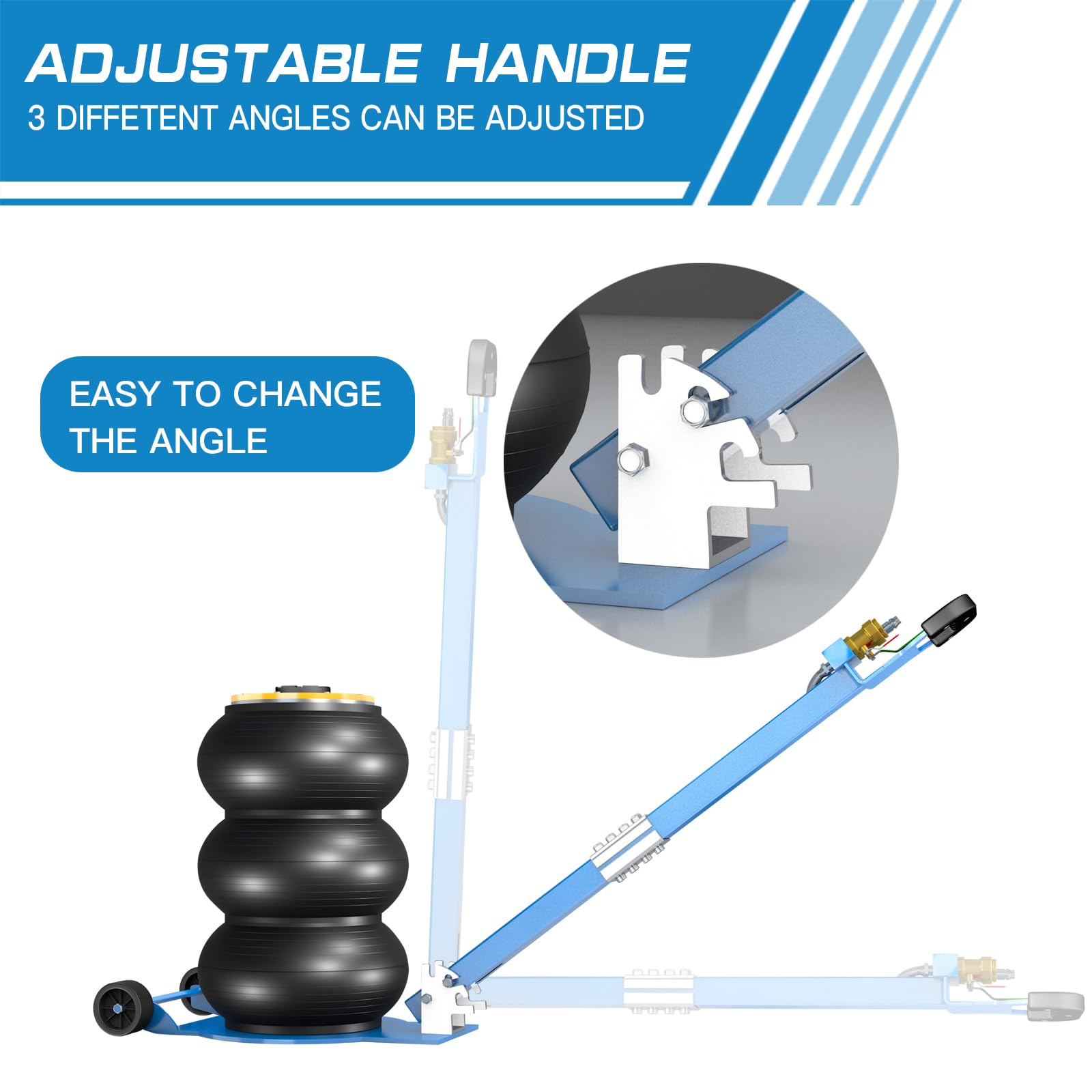 【Adjustable Handle】The air jack has an adjustable 80cm/31.49 inch long handle design, which can be adjusted to three different angles to meet your different angle needs. The air jack handle can be disassembled from the middle and adopts a detachable handle design, making transportation and storage more convenient.The handle is ergonomically designed to protect the hands and facilitate better dragging and use.