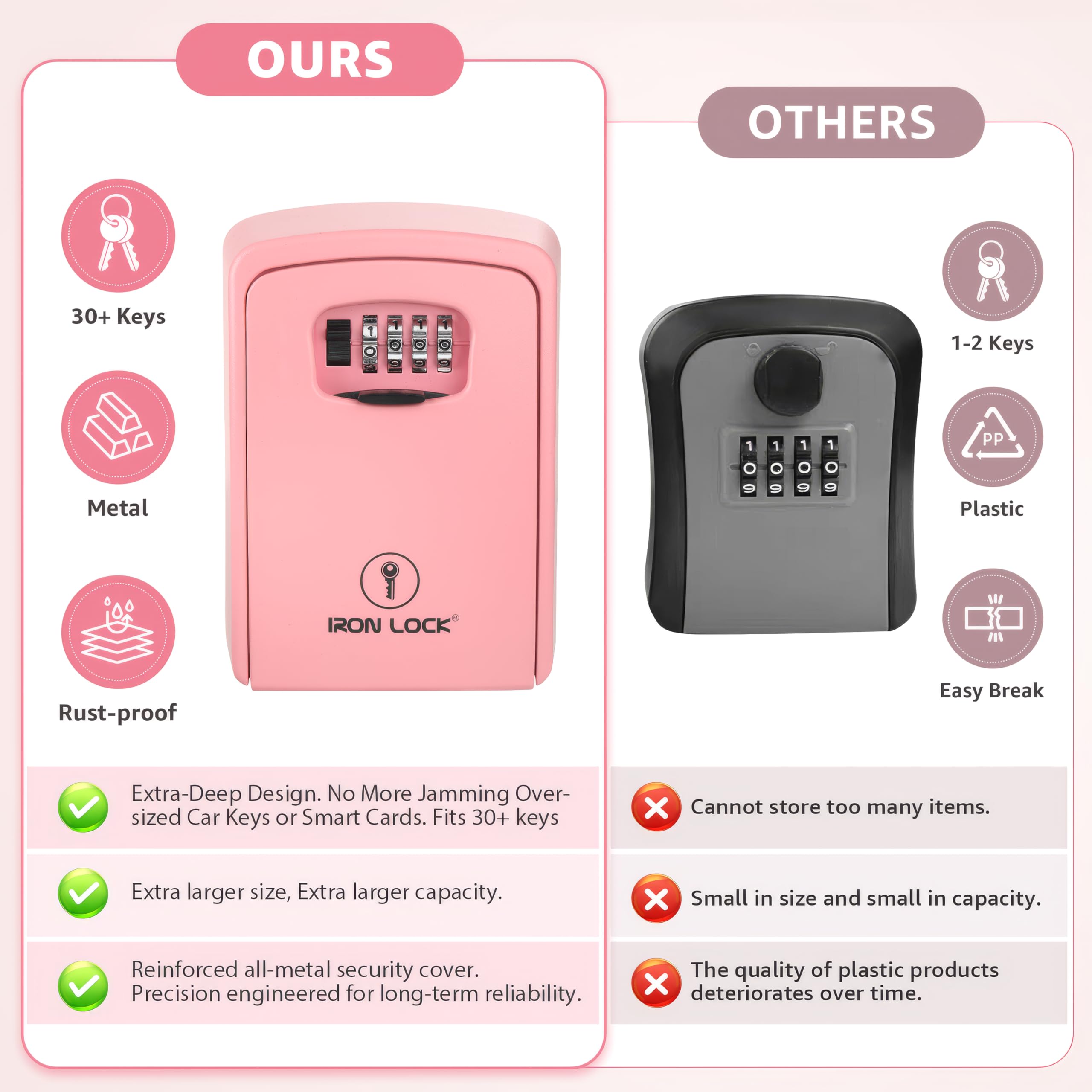 🔑 Heavy-duty outdoor security – built from reinforced zinc alloy and Stainless Steel, this XXL key lock box withstands cutting, prying, hammering, rust, and harsh weather.