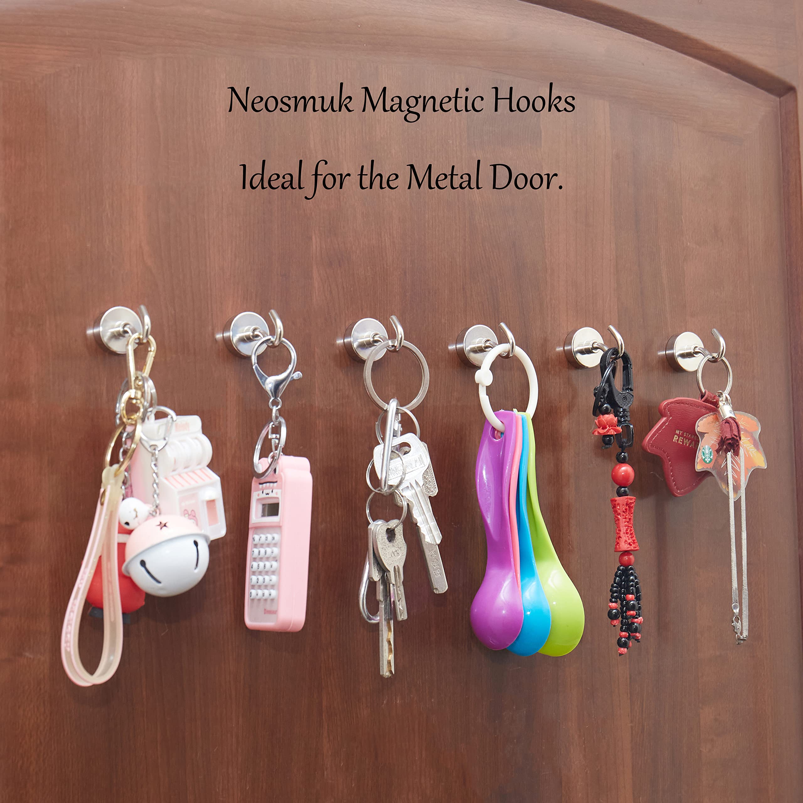 Super Strong Magnetic Hooks – Cruise Ready Neosmuk magnetic hooks deliver up to 40lb holding power, perfect for cruise cabins, ship walls, or refrigerator doors. These heavy duty magnet hooks keep your items secure while saving space on trips.