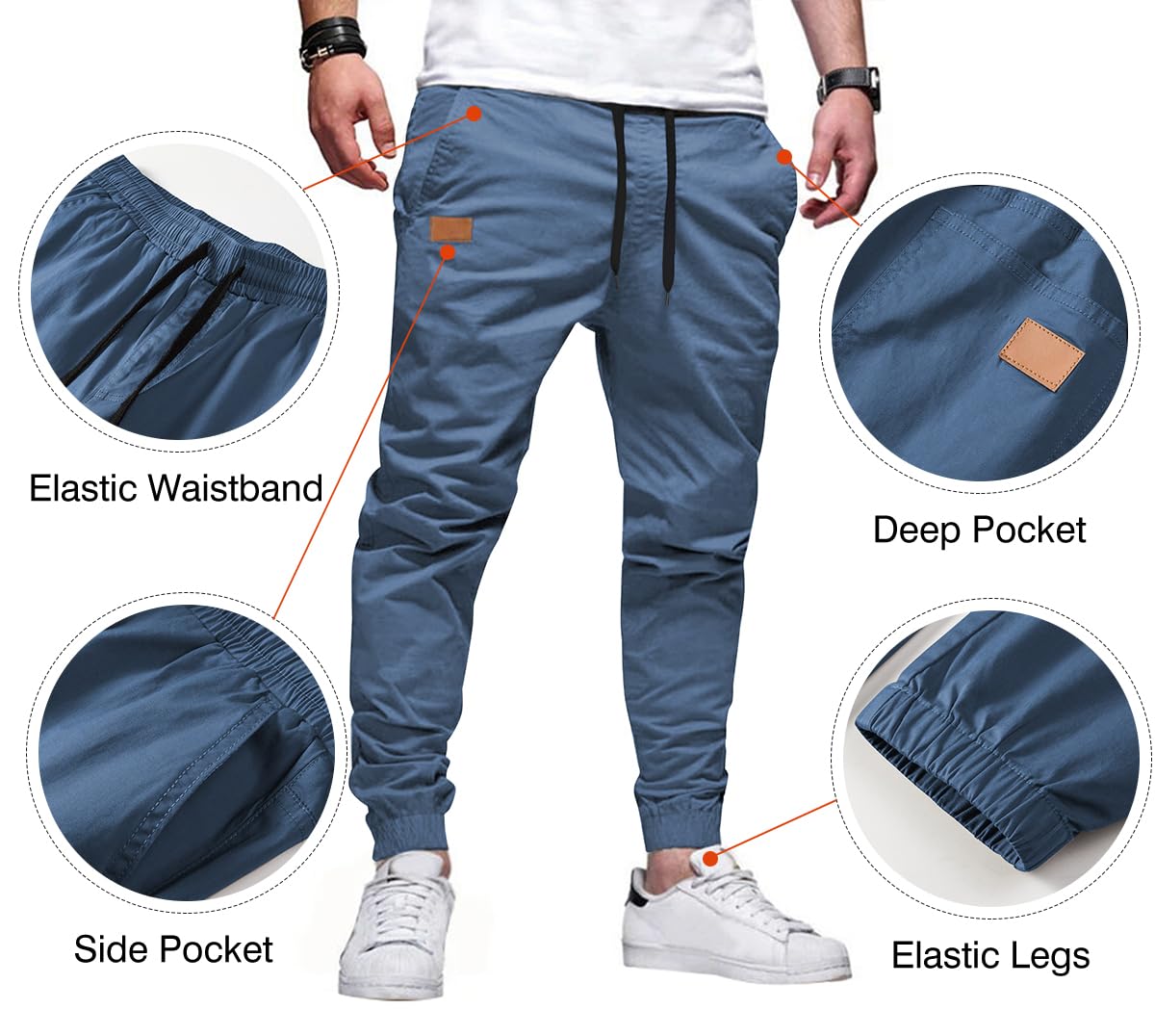Twill elastic and comfortable Breathable material: 94%Cotton, 6%Elastane, more breathable and softer, twill casual pants made of highly elastic materials, providing great flexibility and sports comfort in daily life.