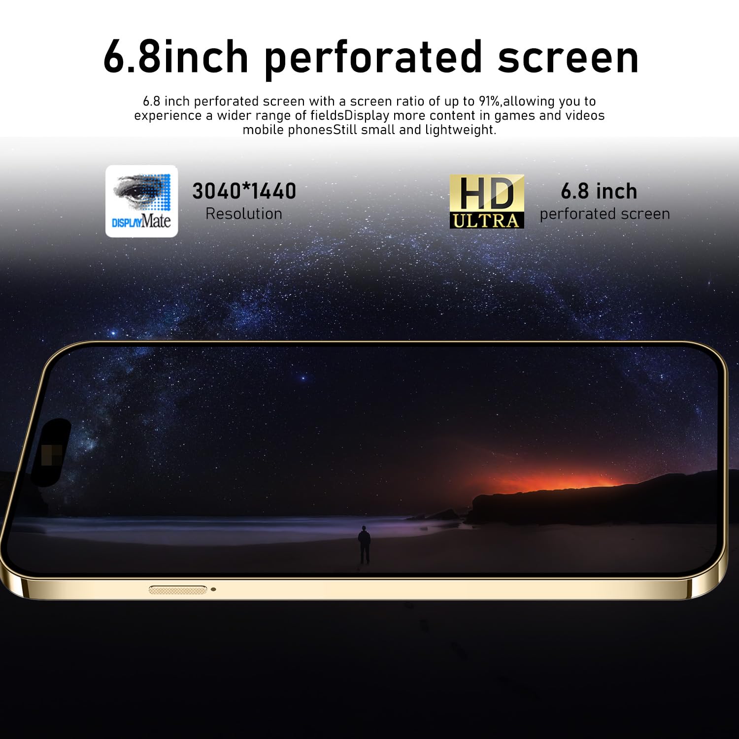 【6.8-inch HD Screen】6.8-inch HD Screen with 3040*1440 resolution 5G cell phones, deliver more vibrant colors and stronger contrasts. Magnesium aluminum body. Facial recognition, on-screen fingerprint unlock to protect your privacy. comfortable to hold. Adopts facial recognition and on-screen fingerprint unlocking to better protect your privacy.