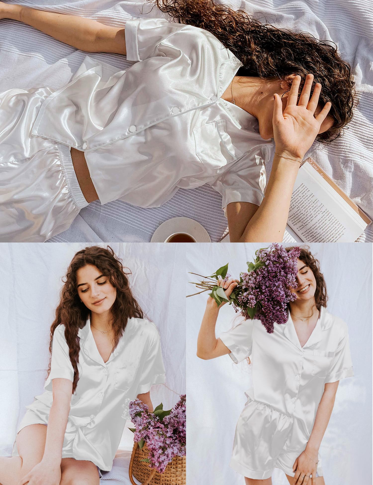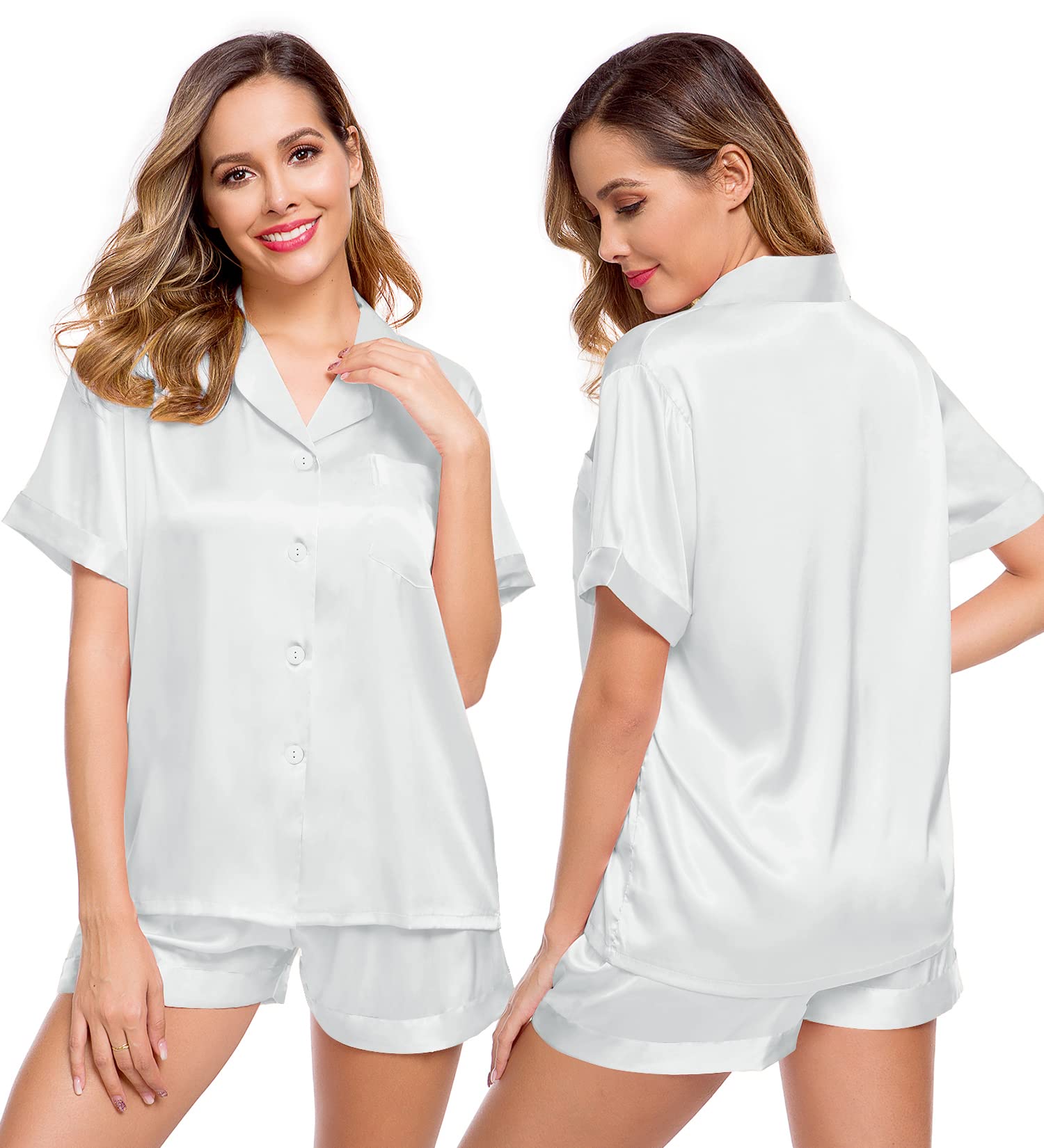❤ OCCASIONS: This womens short sleeve silk satin pajamas set is perfect for sleepwear, nightwear, loungwear.The lounge set can be worn as daily pajamas. Suitable for pajama party, girls day, bride wedding. Must have for your bridal party or just daily wear! This silk pajamas for women shorts set is lightweight and easy to carry.