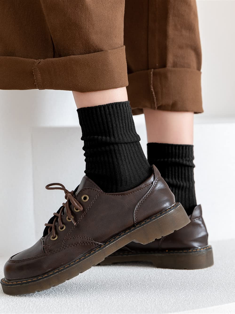 Material: Womens black crew socks are made of high-quality cotton spinning, ensuring they are super soft and comfortable. They are also breathable and skin-friendly, providing a refreshing feeling all day long.