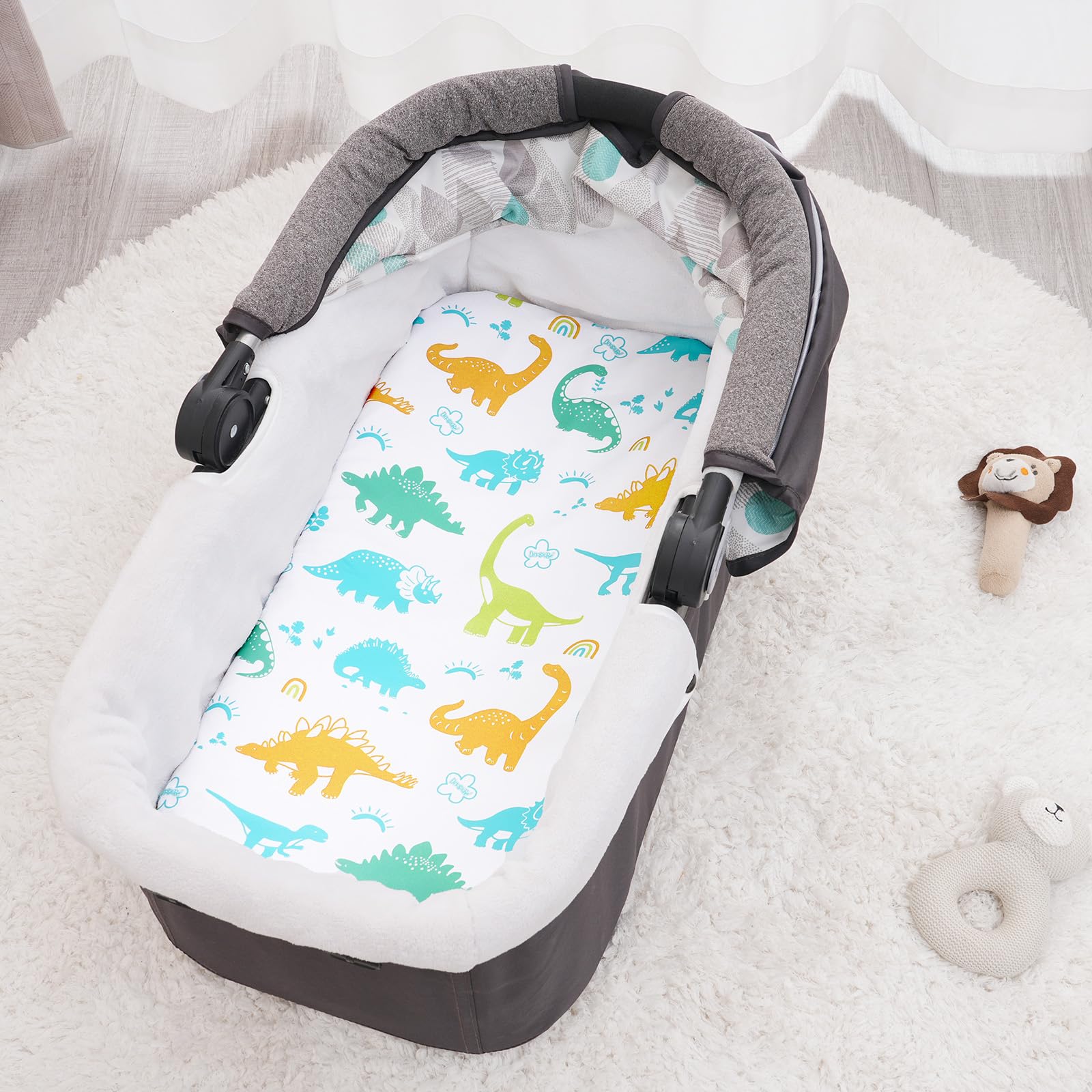 PHF Soft Bassinet Sheet Set, 2 Pack Silky Comfy Breathable Cradle Sheets for Baby Boys Girls, Univeral Fit for Most Oval Rectangle Cradle and Bassinet Mattress/Pad, Dinosaur