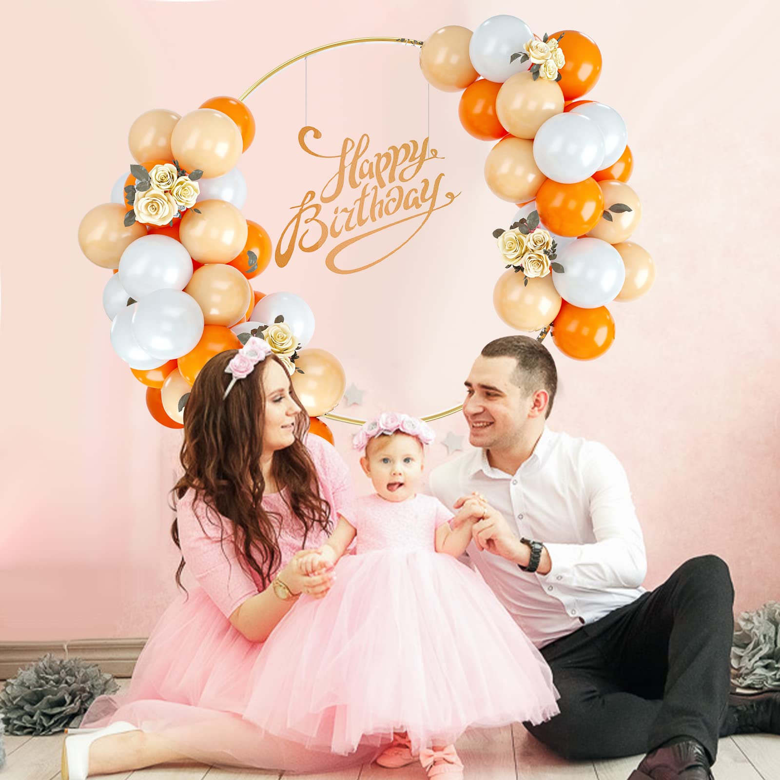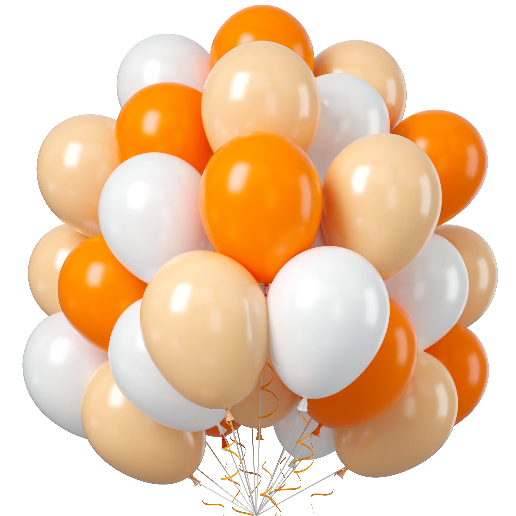 50PCS Orange Apricot Balloons:include 15*10 inch white, 15*10 inch orange, 20*10 inch apricot skin color, 1 * balloon chain, 1 * ribbon. Our party balloons can be used to DIY hula hoop balloon garlands and then used to decorate dessert tables, or can be hung on the wall for decoration, or used as photo props