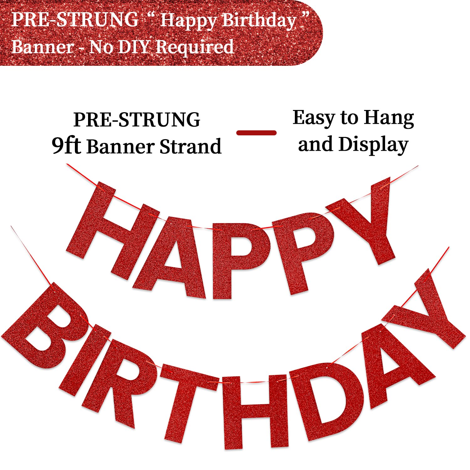 Ready to Party: Our happy birthday banner comes PRE-STRUNG and ready to hang, saving you time and effort in setting up your birthday party decorations