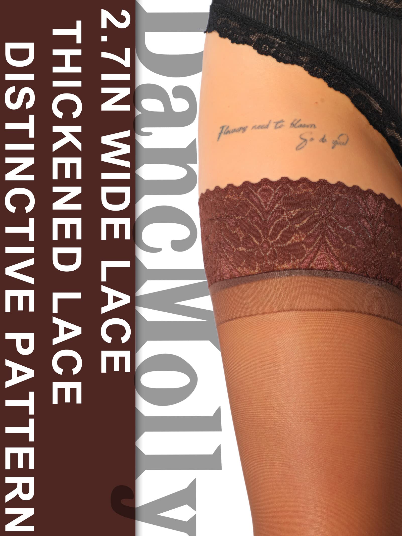 BARELY-THERE SHEER! These are the thigh highs that will take you everywhere. These thigh highs push the limits of fashion while treating your legs 180 coverage and a world of comfort. Will give your legs a luxurious sensation and a silky smooth finish. You are the center of attention when you put on a pair of DancMolly thigh highs.