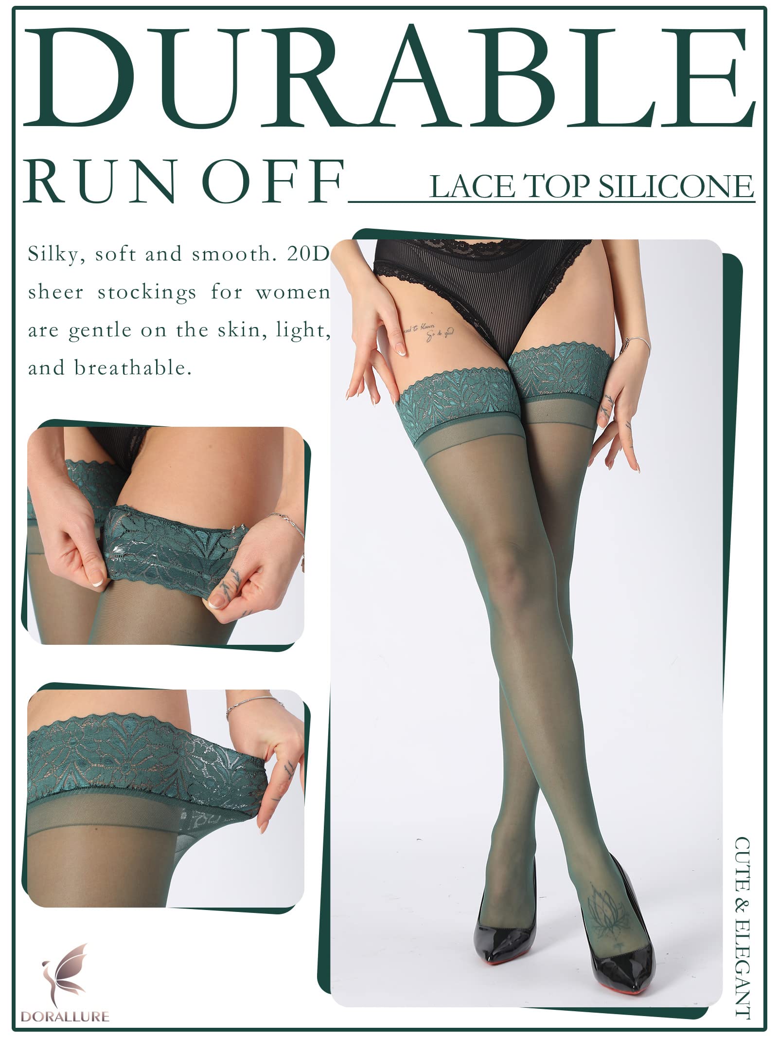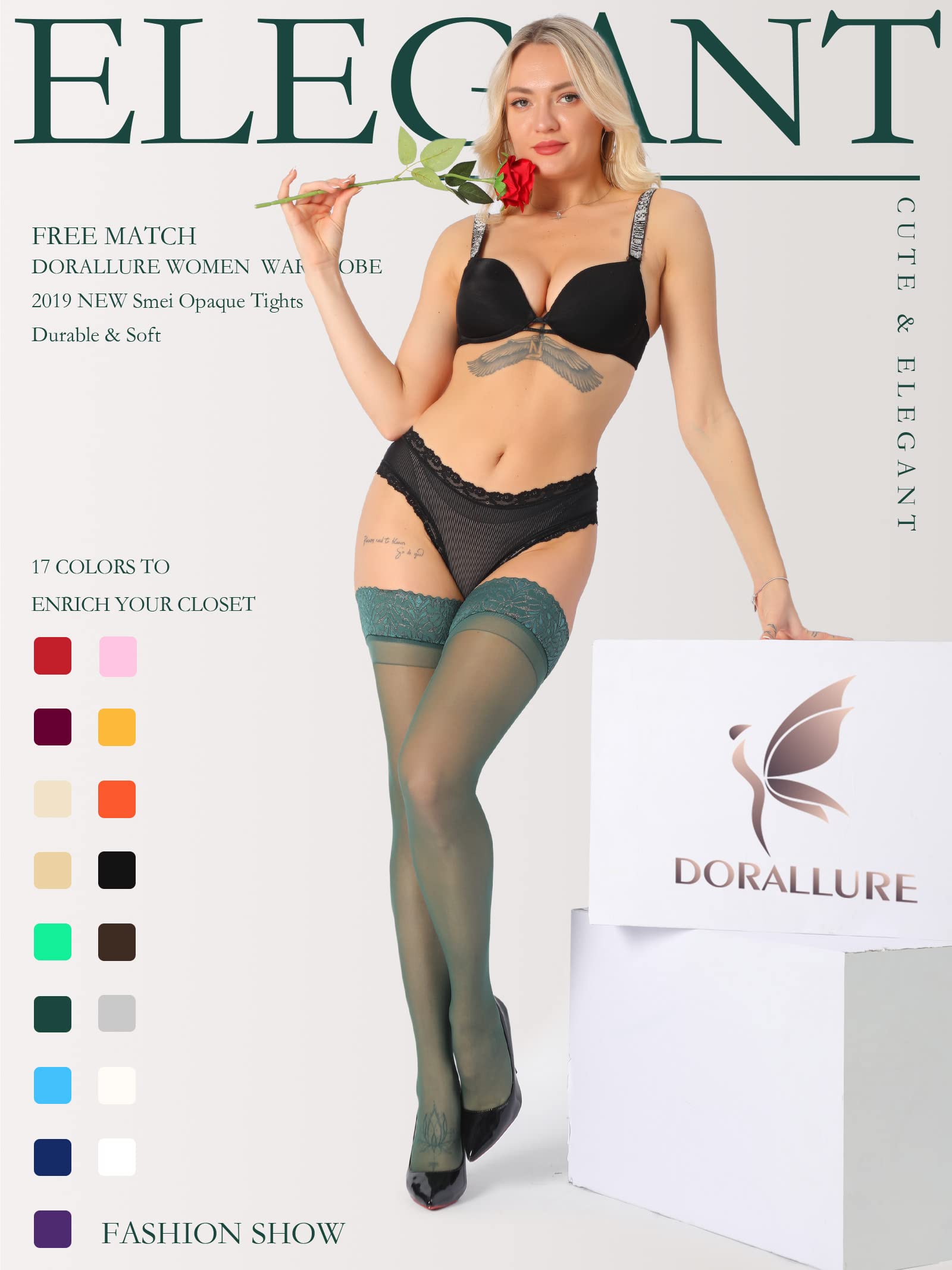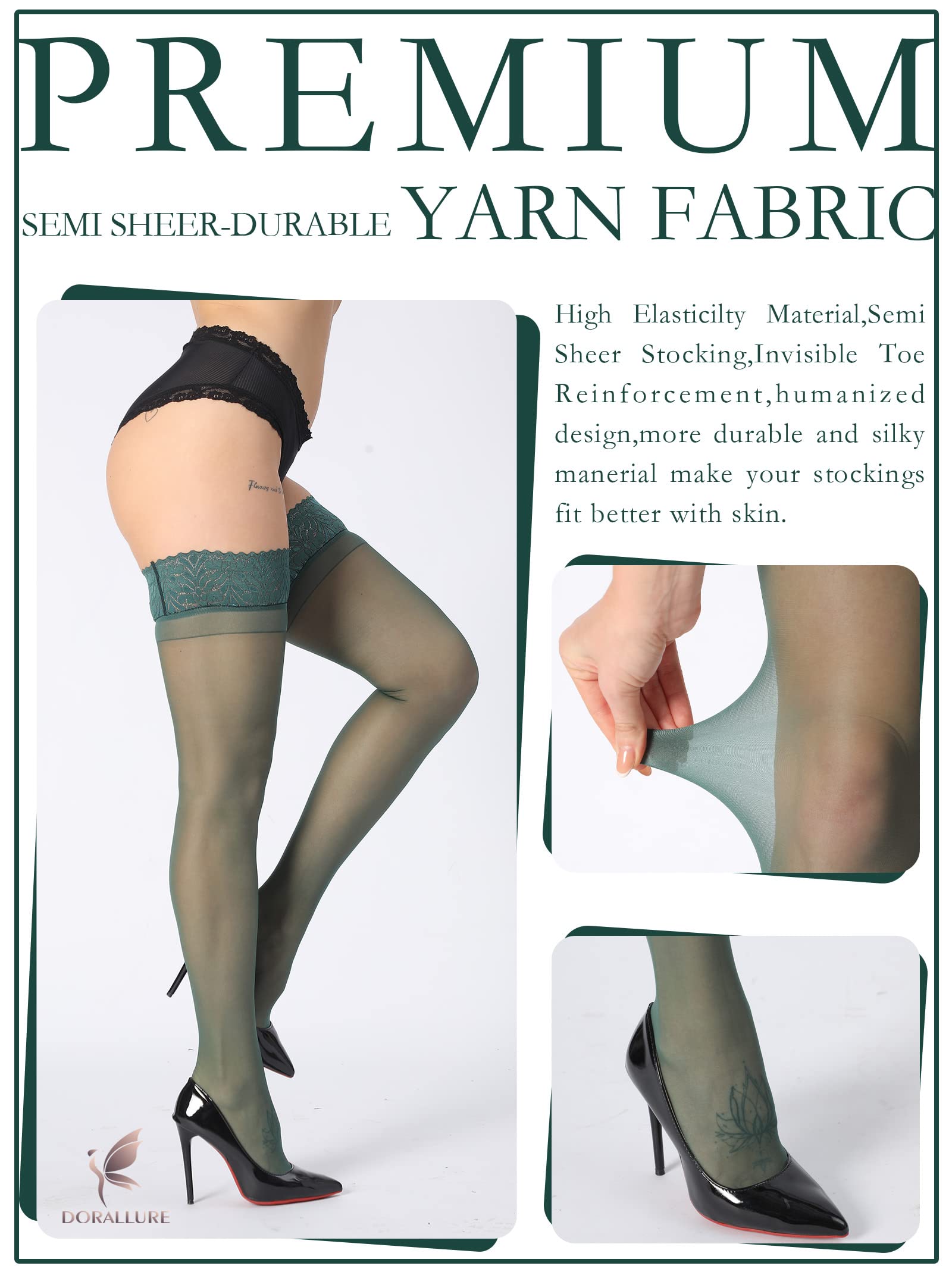 [PREMIUM YARN FABRIC] DORALLURE thigh high stockings for women silky, soft and durable.After continuous search and improvement, we finally chose this fabric. The silky texture makes them feel incredibly natural and soft. These stockings are ideal for work, holidays, evening wear, & for wedding or bridal uses.