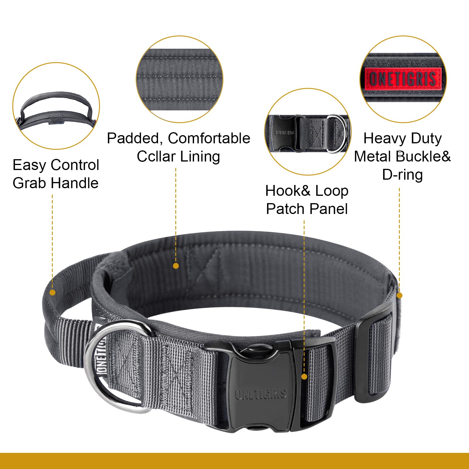 【Premium Material】Tactical dog collar is made of reinforced quality nylon fabric with a strong metal buckle, this dog tactical collar has a soft padded lining to prevent abrasion to your dog's skin and hair