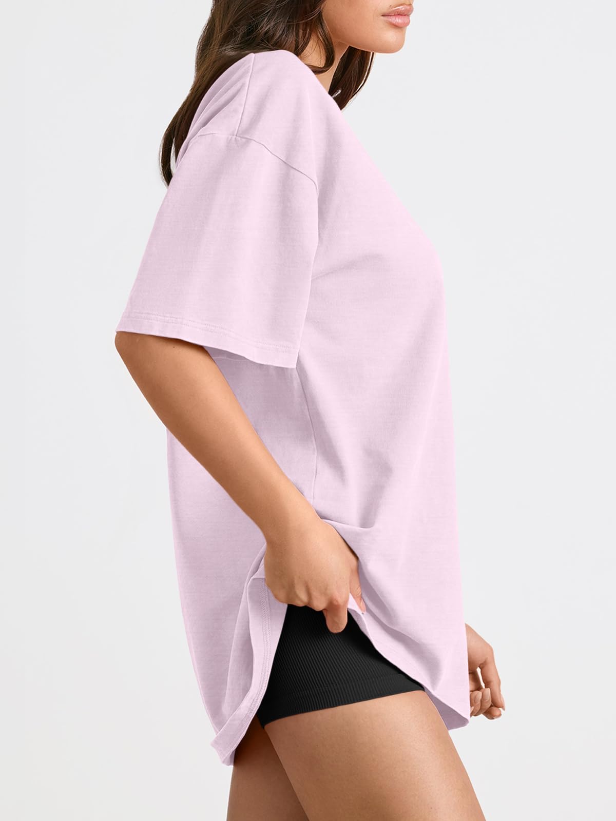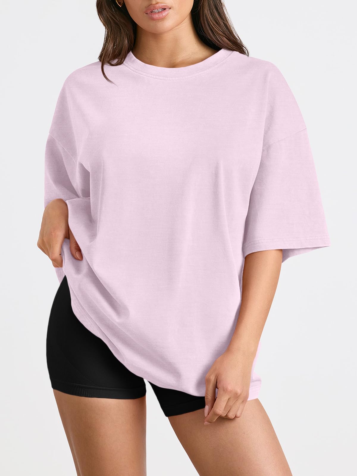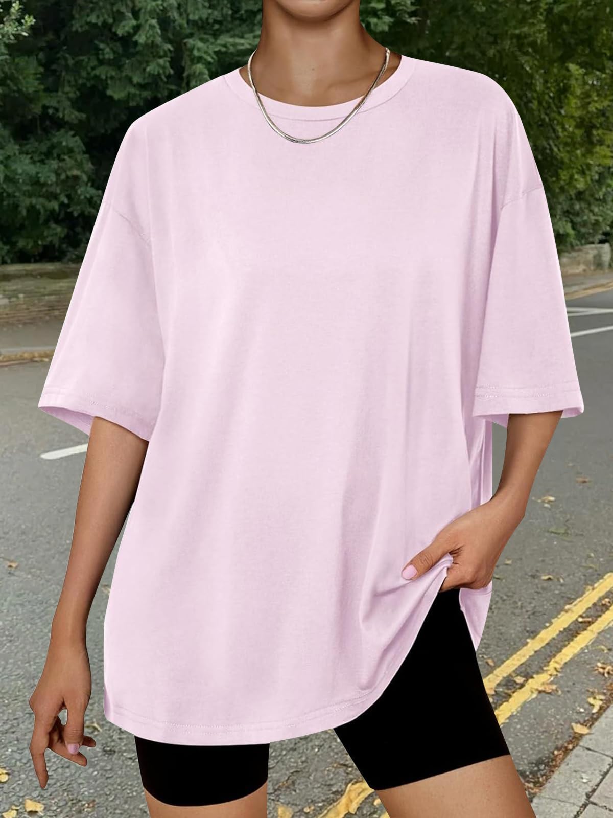 Design:Short sleeve shirts,round neck,loose fit tops,oversized casual blouse,solid color never out of style,easy to match with every style.