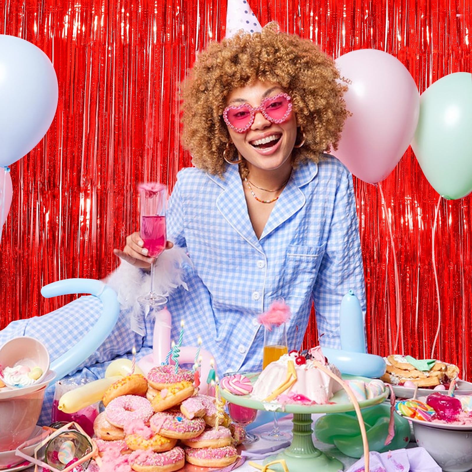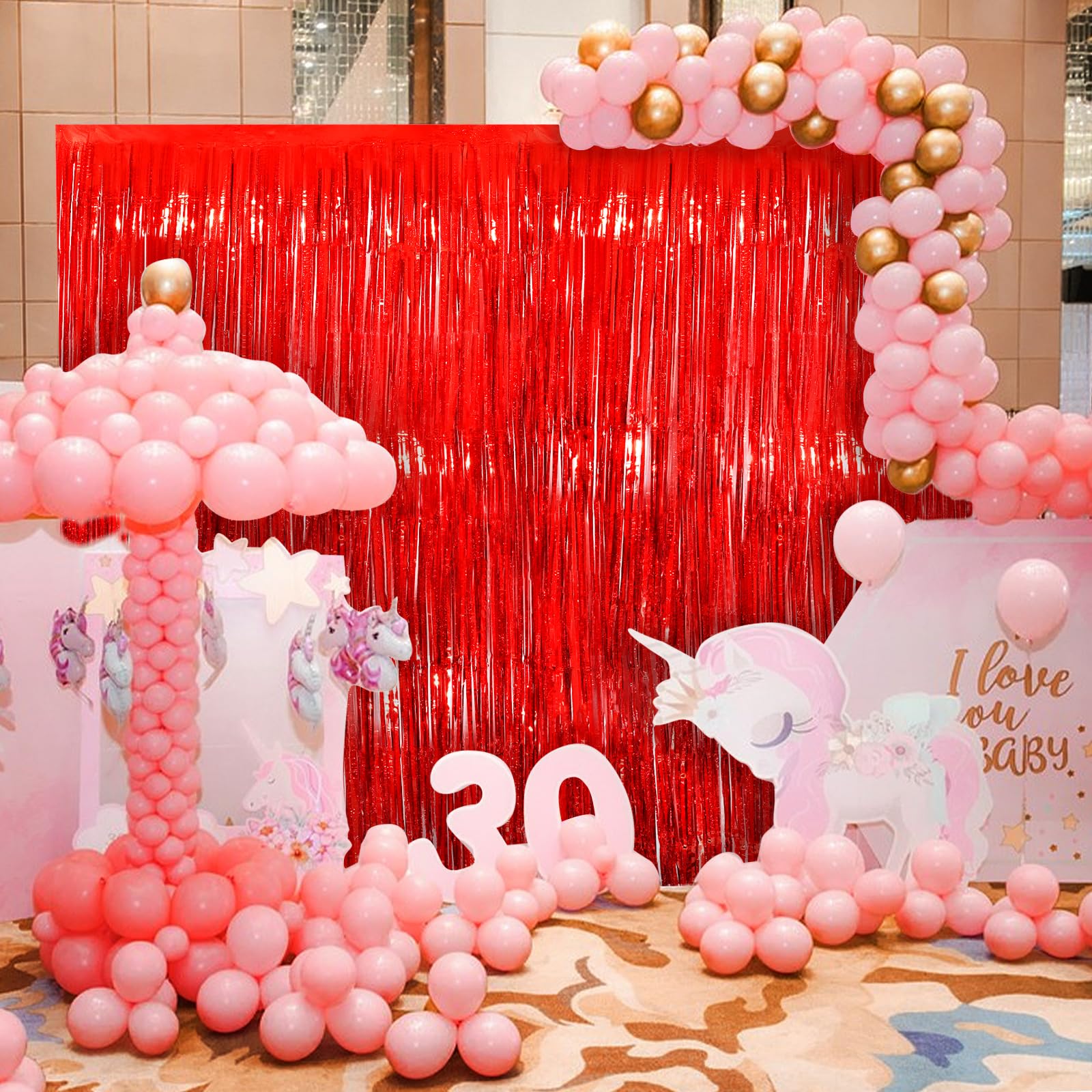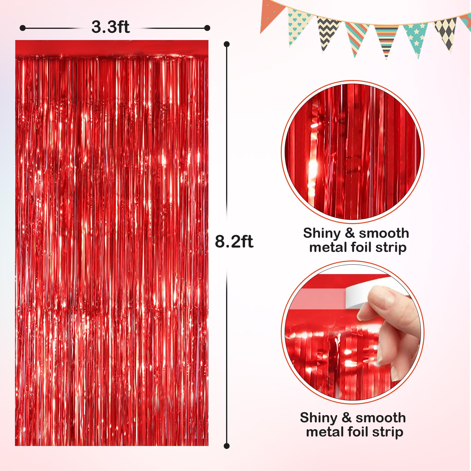 🎈Durable and Safe: Made of high-quality aluminum foil, this streamer backdrop curtain is non-toxic, odorless, non-fading, and safe for families with children and pets. The wide cut ensures that it won’t easily strip down and is easy to store