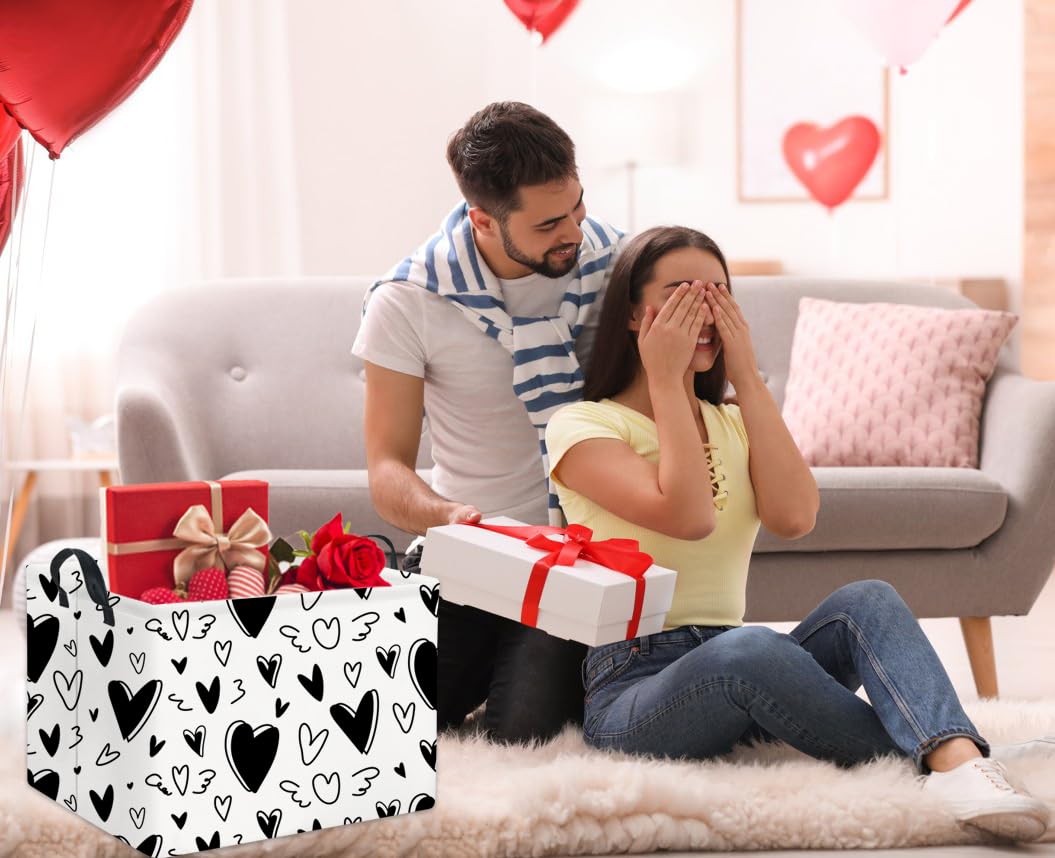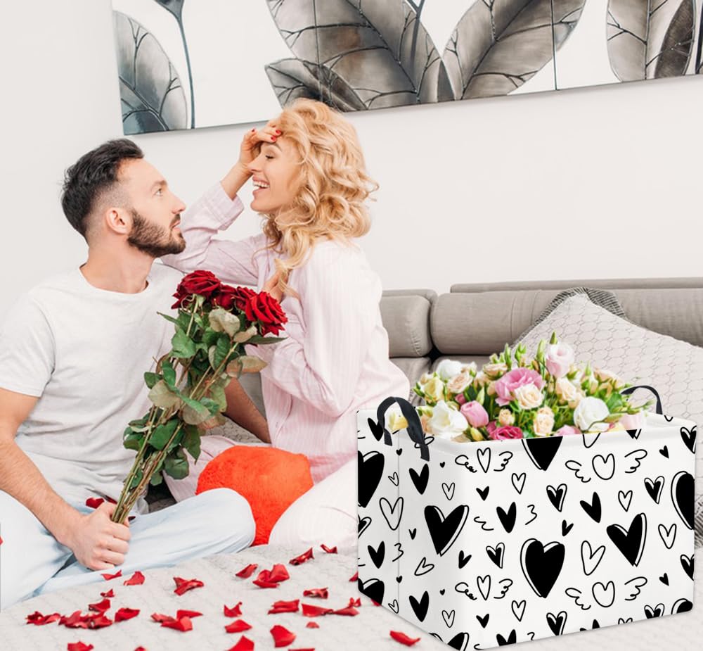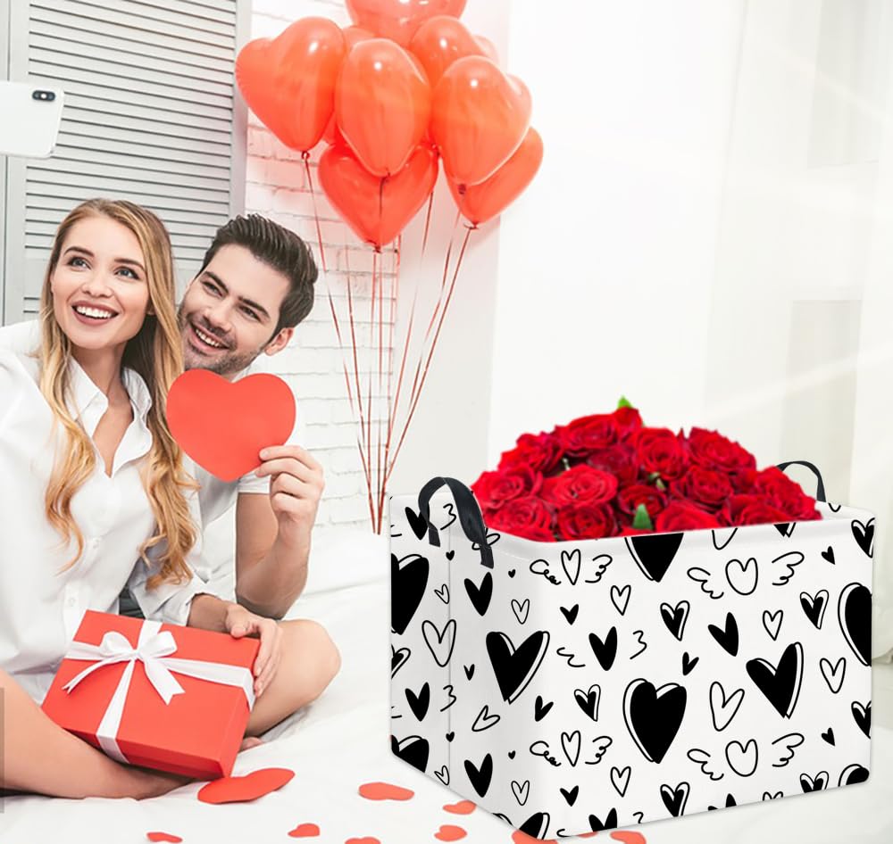 MATERIAL:The valentines day basket basket is made of durable canvas &The inner lining is made of waterproof fabric; sturdy metal rod frame around the top keep the basket shape.