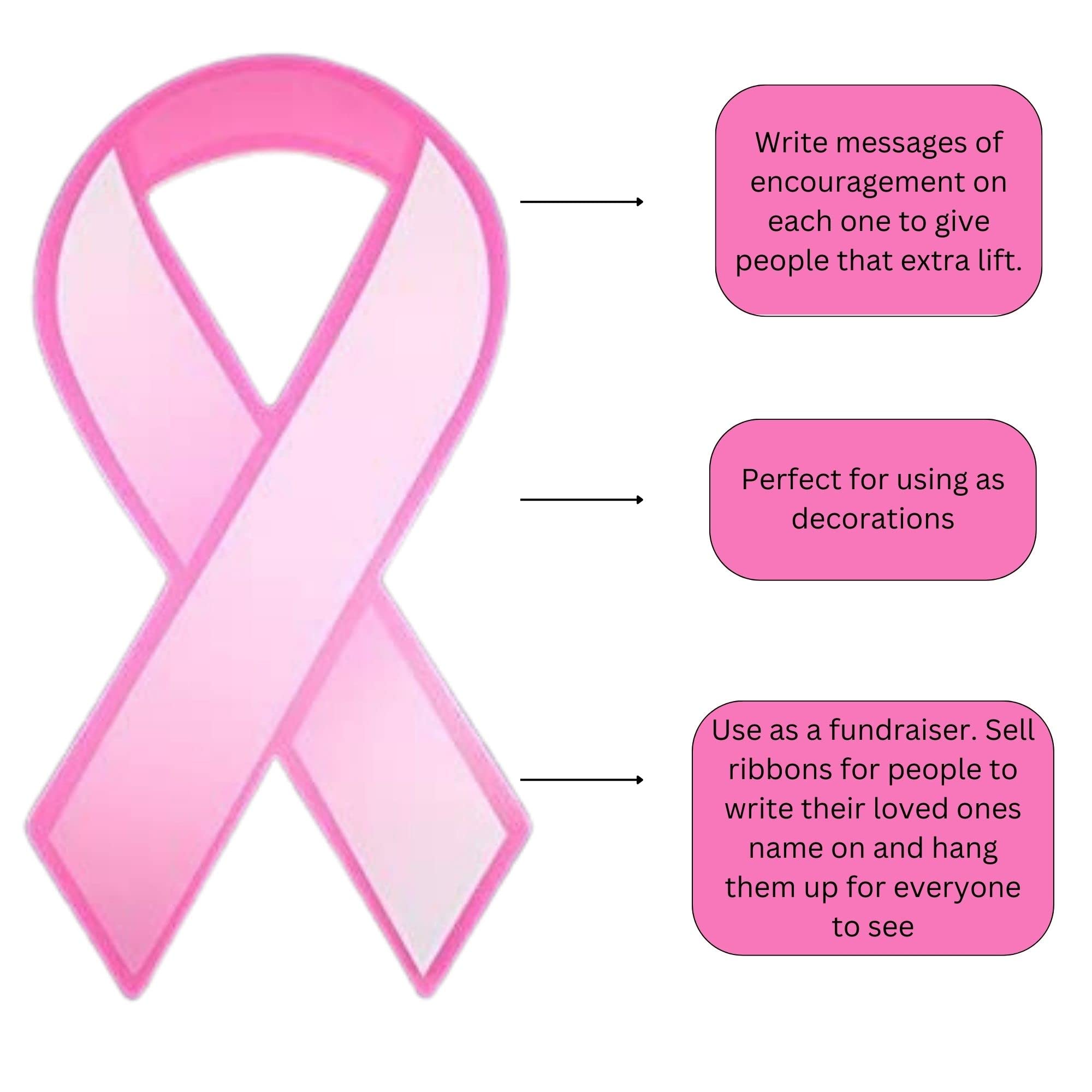 BREAST CANCER FUNDRAISING: Use these high-quality breast cancer awareness paper ribbons during fundraisers focused on research and treatment. Use our crafts when hosting a fundraiser, where you can provide education about breast health, free resources, and support as patients navigate the scary and emotional cancer care process.