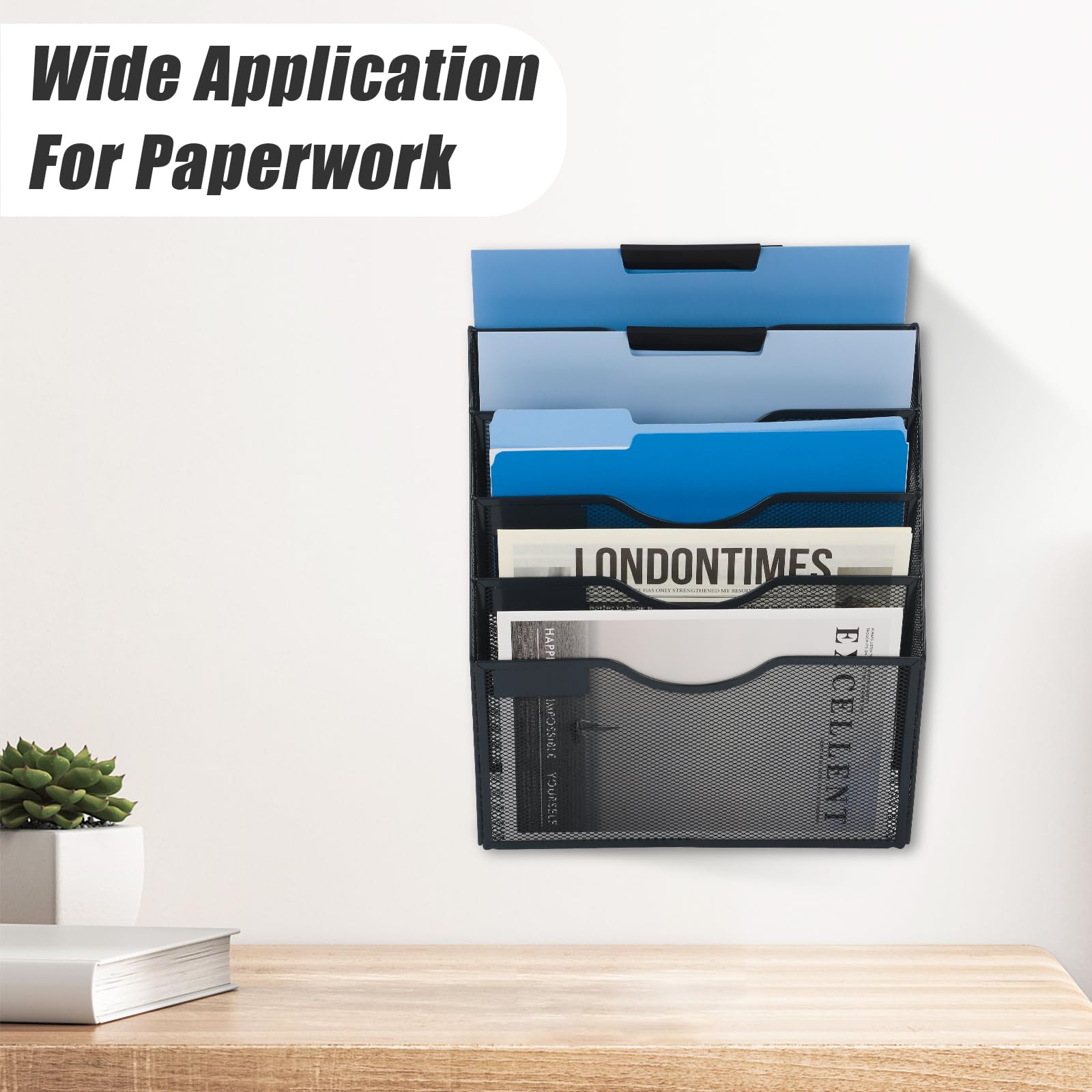 Easy Access to Files: Wall mounted file organizer features and arched design that allows for easy access to contents in the files you store