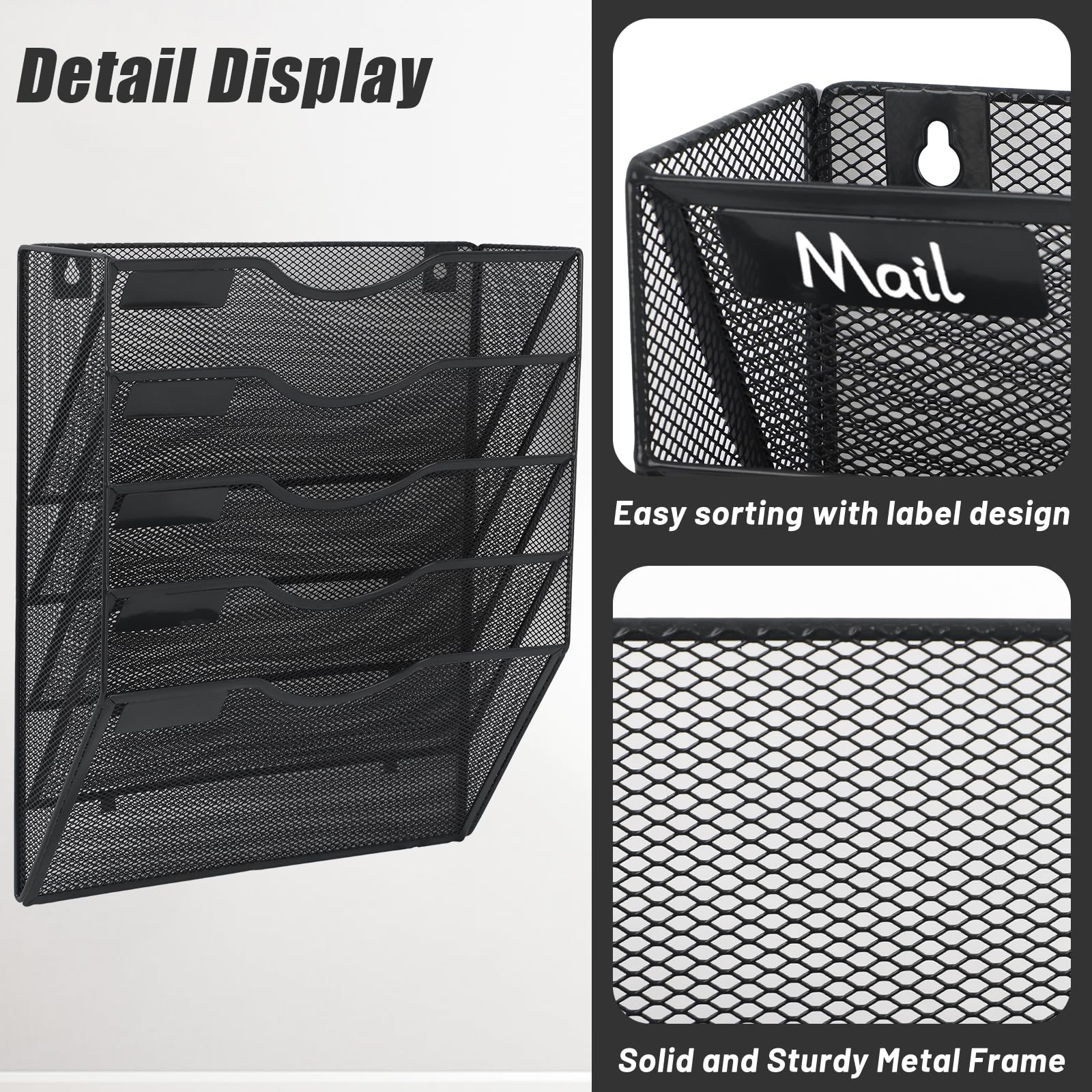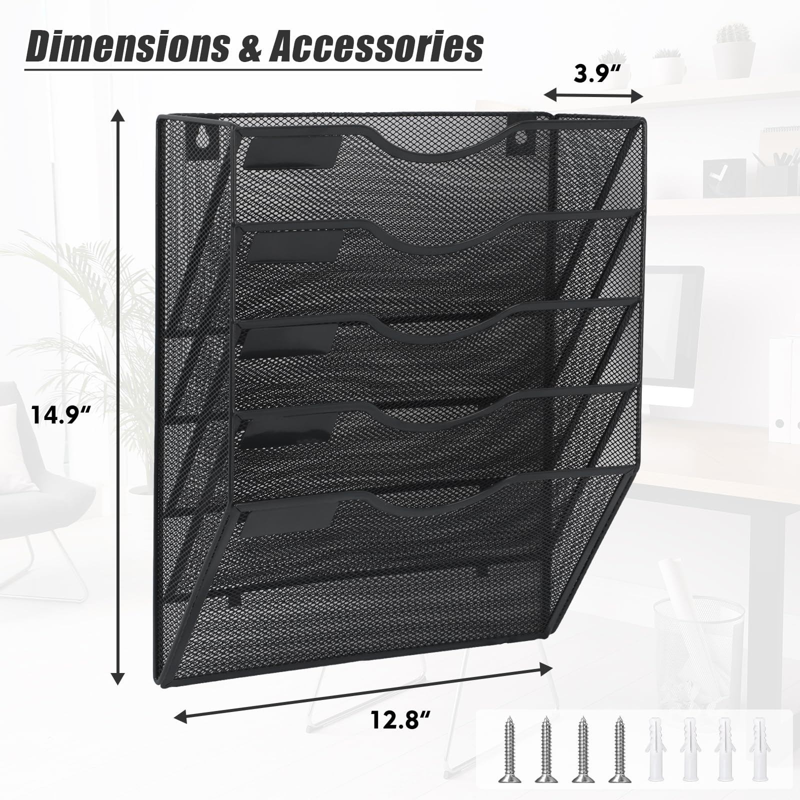 5 Pockets: The wall file organizer comes with mounting screws that can be easily mounted on the wall