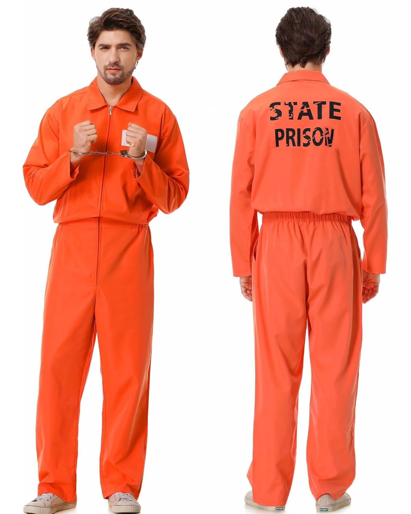 Easy to Wear Jumpsuit: The one-piece orange jumpsuit is easy to put on and take off, making it the perfect costume choice for those for Halloween. The zipper closure at the front allows for easy dressing, while the elastic waistband ensures a comfortable fit