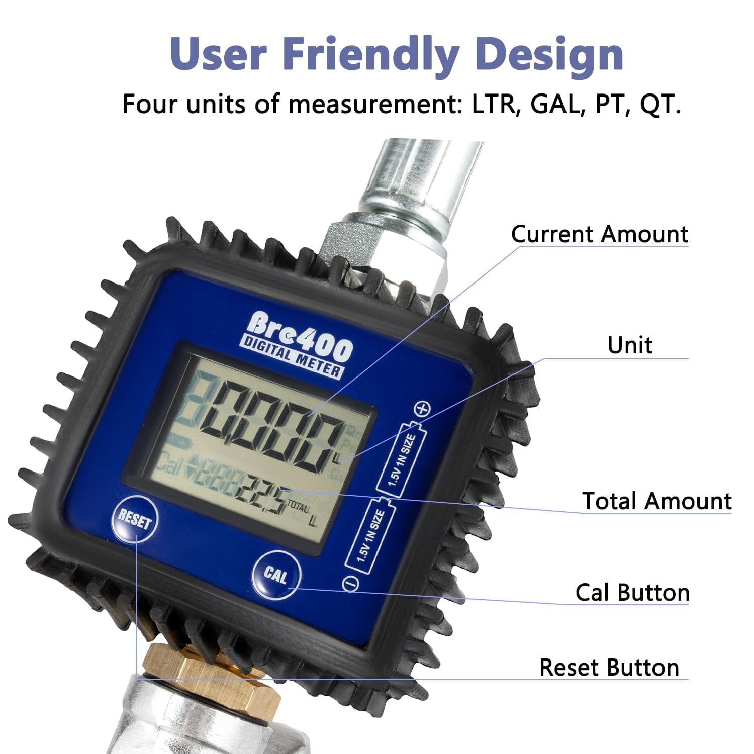 4 UNITS AVAILABLE: The digital oil gun provides five units of liters, gallons, pints, quarts. Can easily choose units that suitable for you