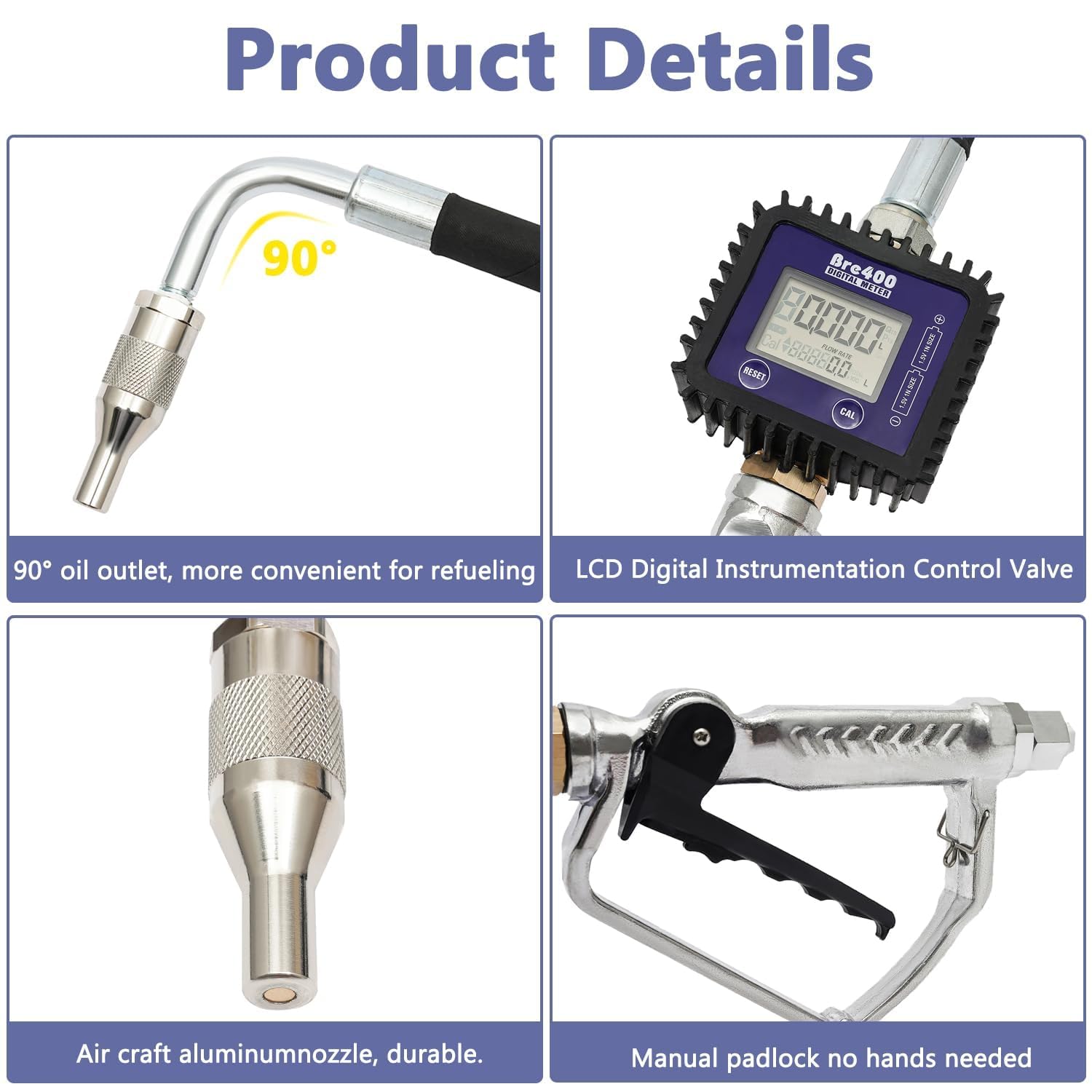 LCD DESIGN: The digital valve oil control gun features an LCD display, easy to read, and accurate amount can show the flow rate and single filling volume