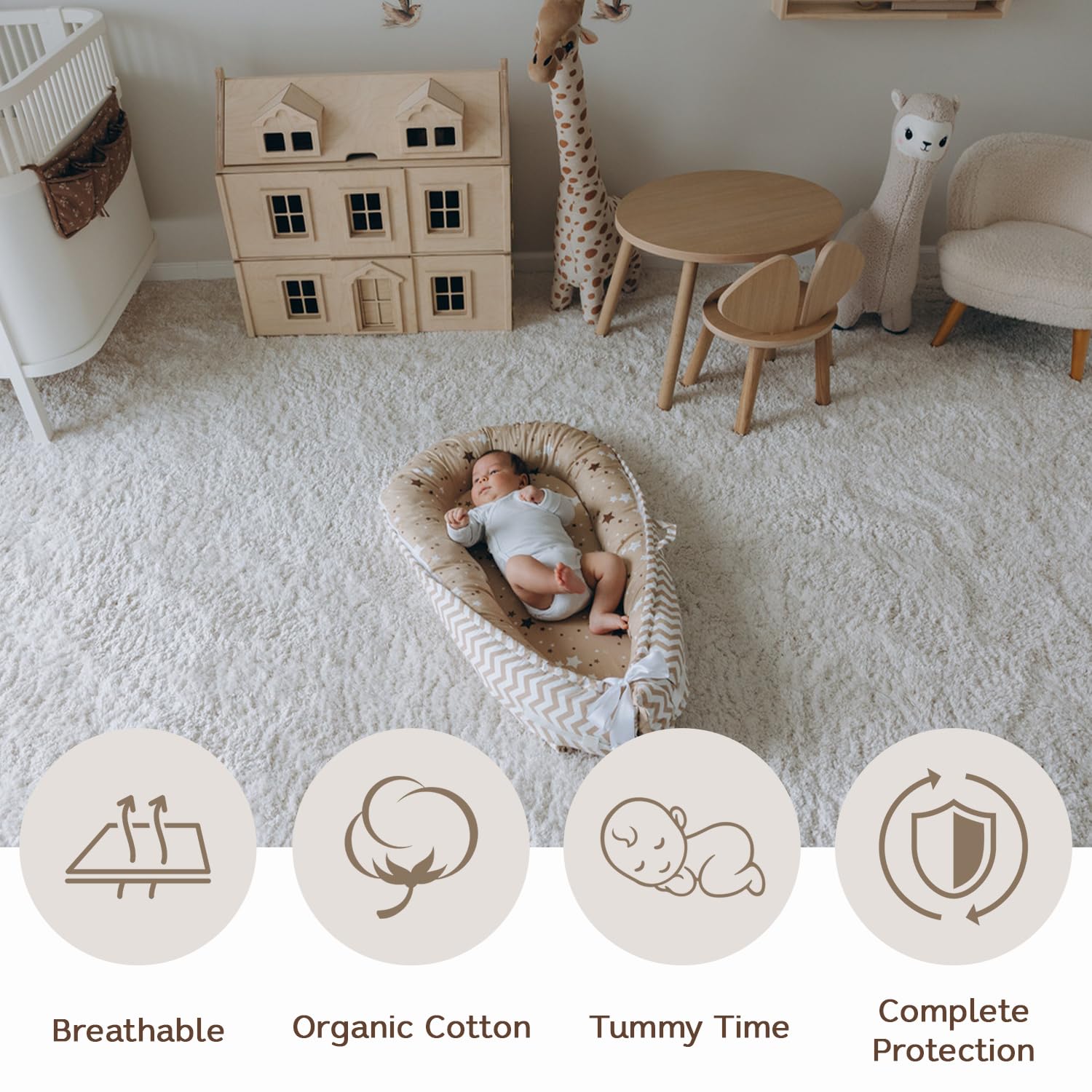 Gentle Comfort for Your Baby β Designed with ultra-soft 100% organic cotton and breathable materials, the Aila + Aiden baby lounger offers a cozy space for daytime use, tummy time, diaper changes, and bonding moments.