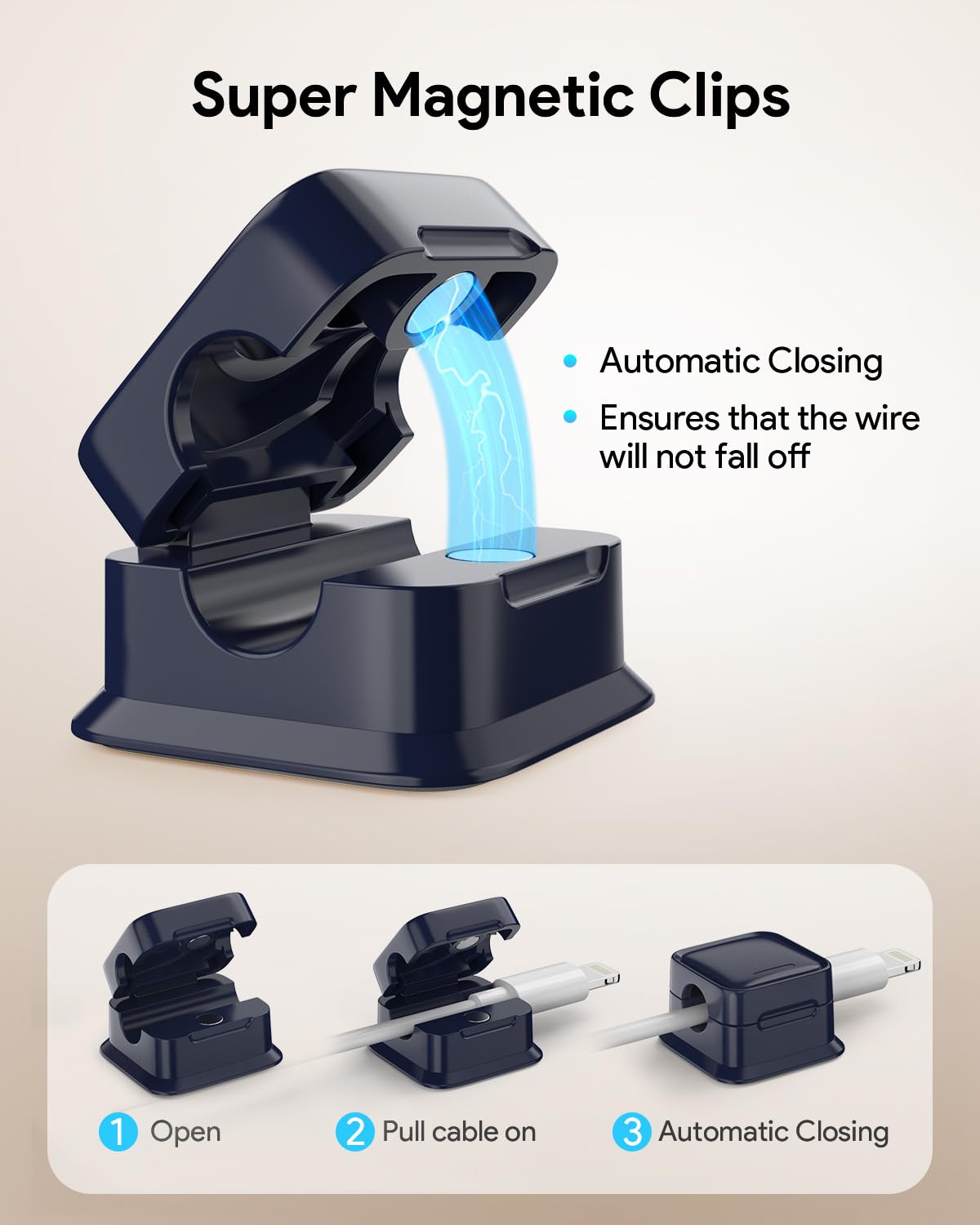 Magnetic Locking & No Falling Off: Secure magnetic grasp opening and closing allow easy cord in,and powerful magnetic lock the organizer firmly to hold any charging head without falling off, more convenient to pull the cables out for smoothly using