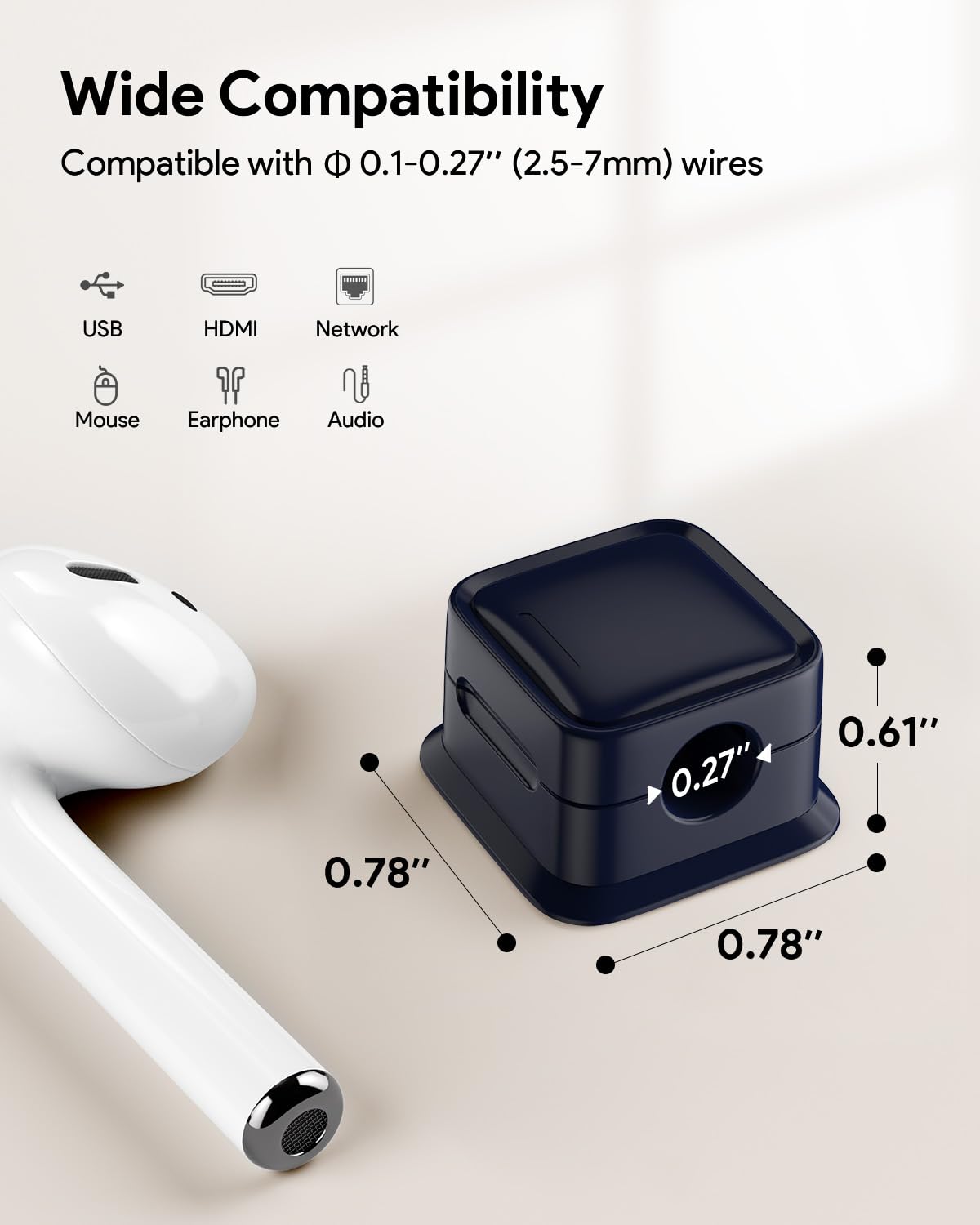 Hold Most Wires: Diameter of about 0.3in allows to hold most cords, such as Type-C charger cords, lightning cords, HDMI cords, USB cables, computer power wires, network wires, mouse cords, keyboard cables, headphone cords