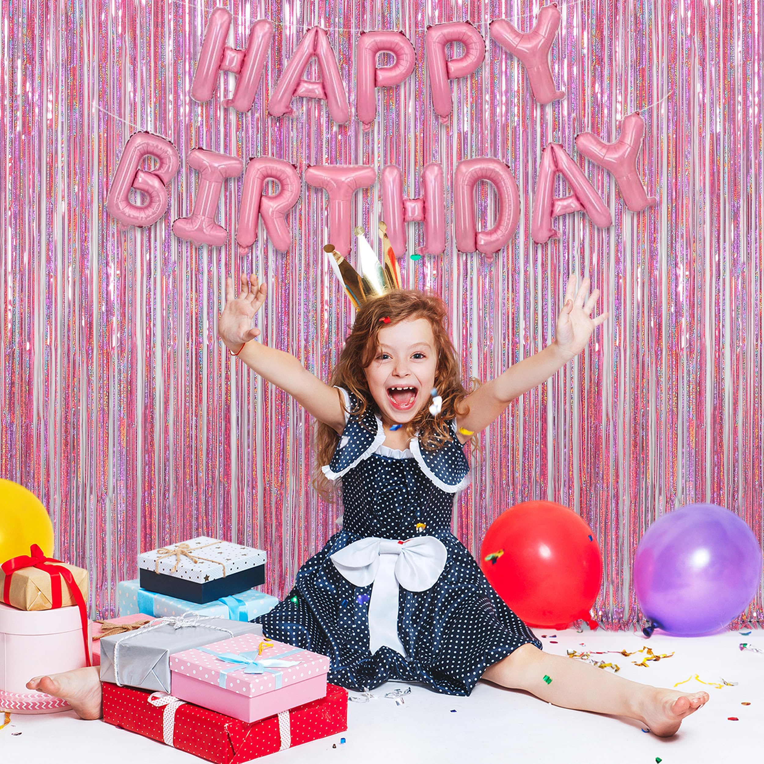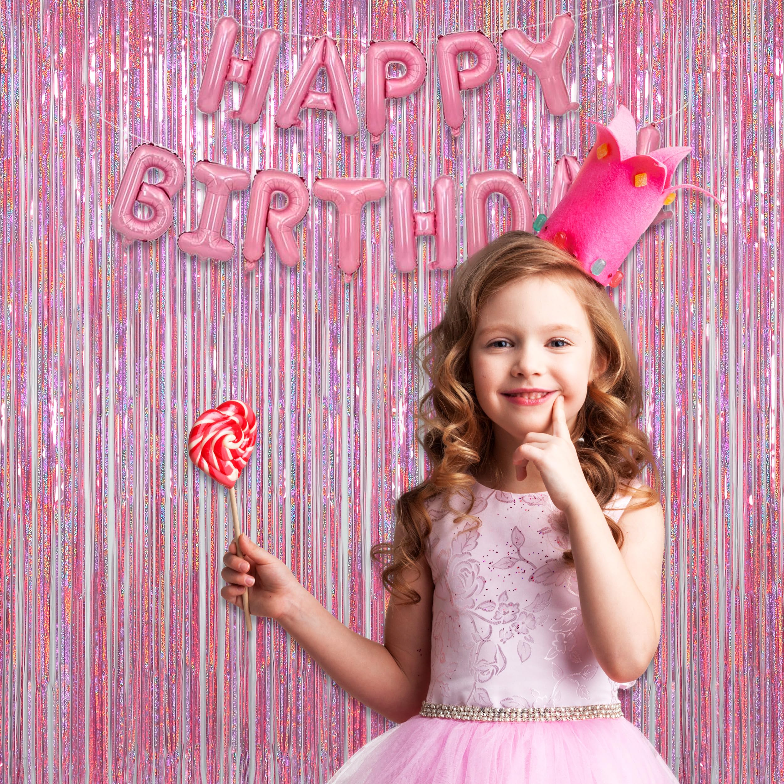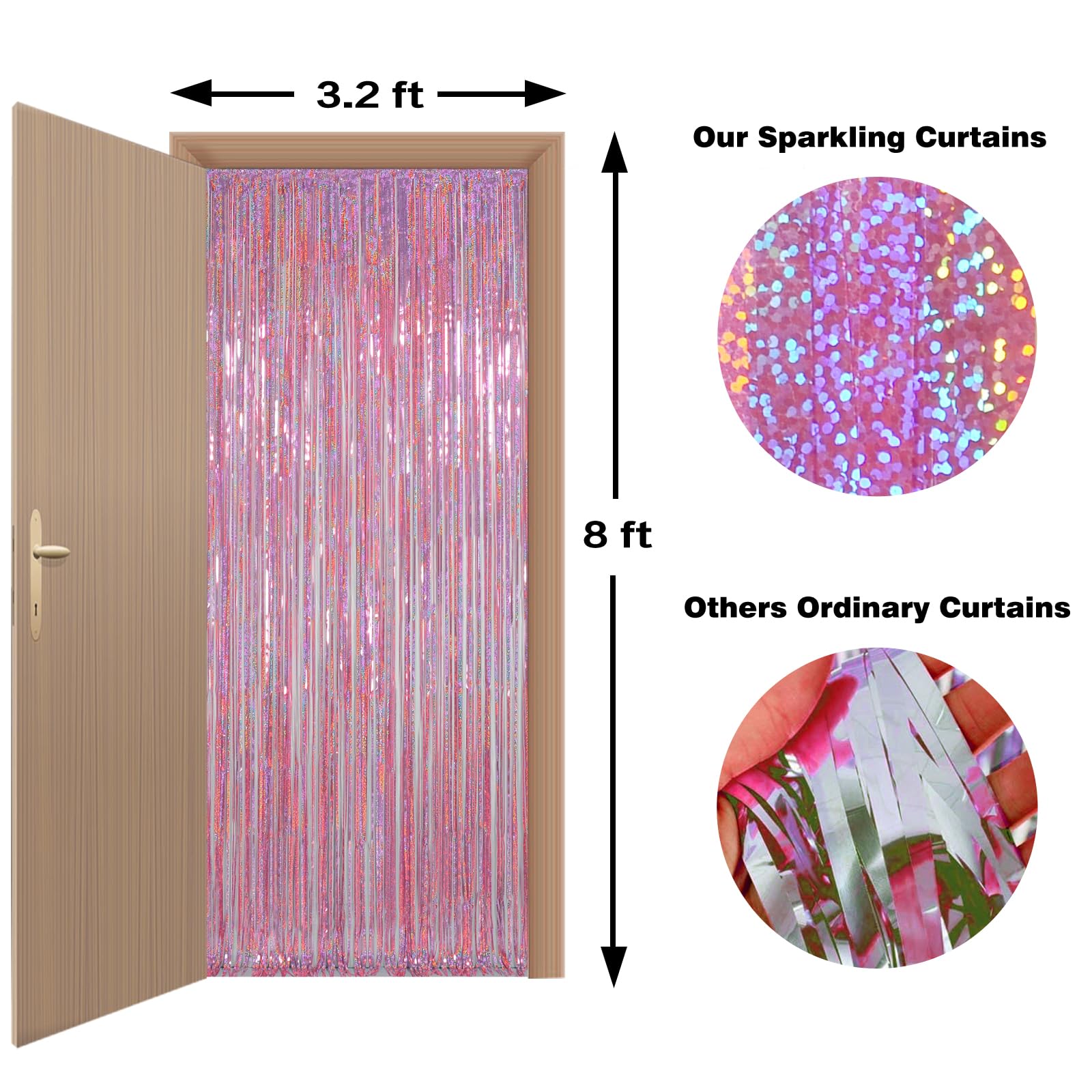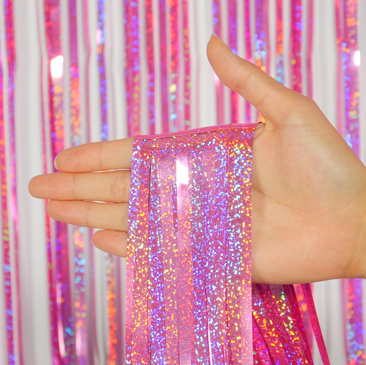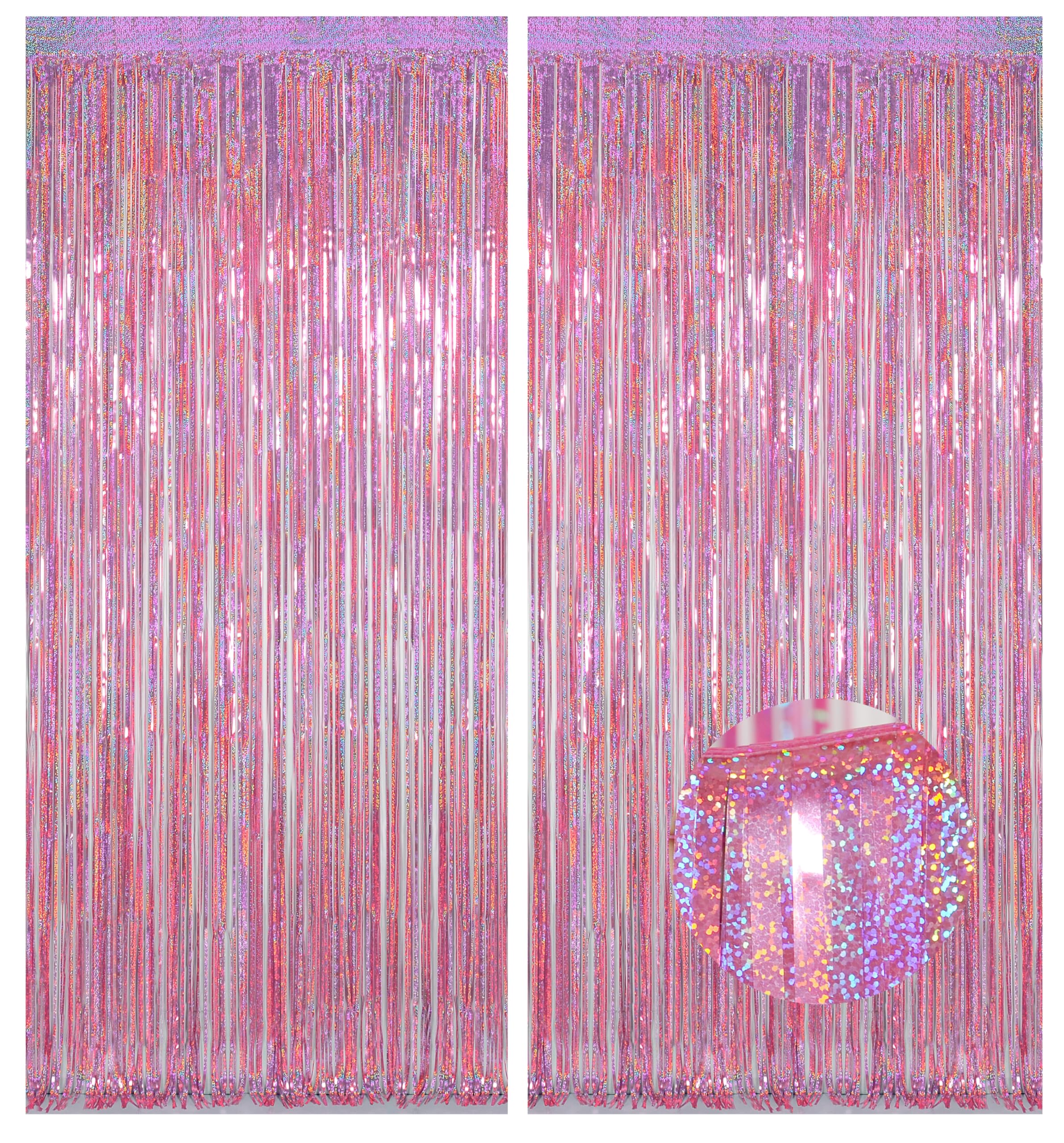 Double-Pack Glamour: Two full-coverage pink foil fringe curtains create instant magic for doors, walls, or photo zones. The laser-cut tinsel reflects light beautifully, making it a must-have for theme birthdays, baby showers, and dazzling bachelorette parties