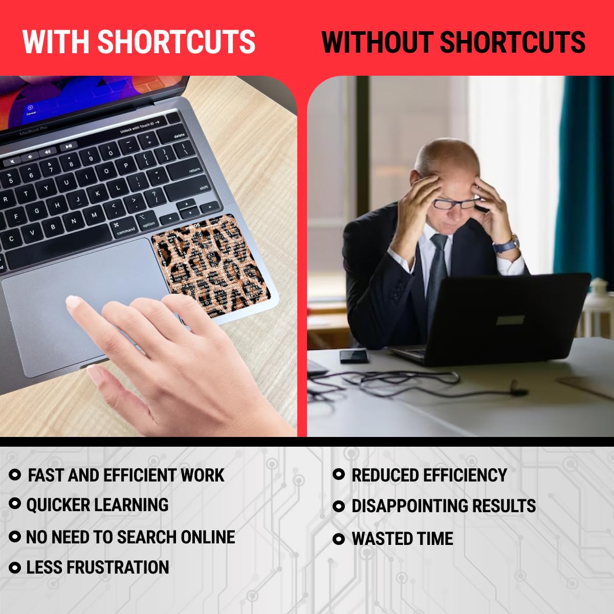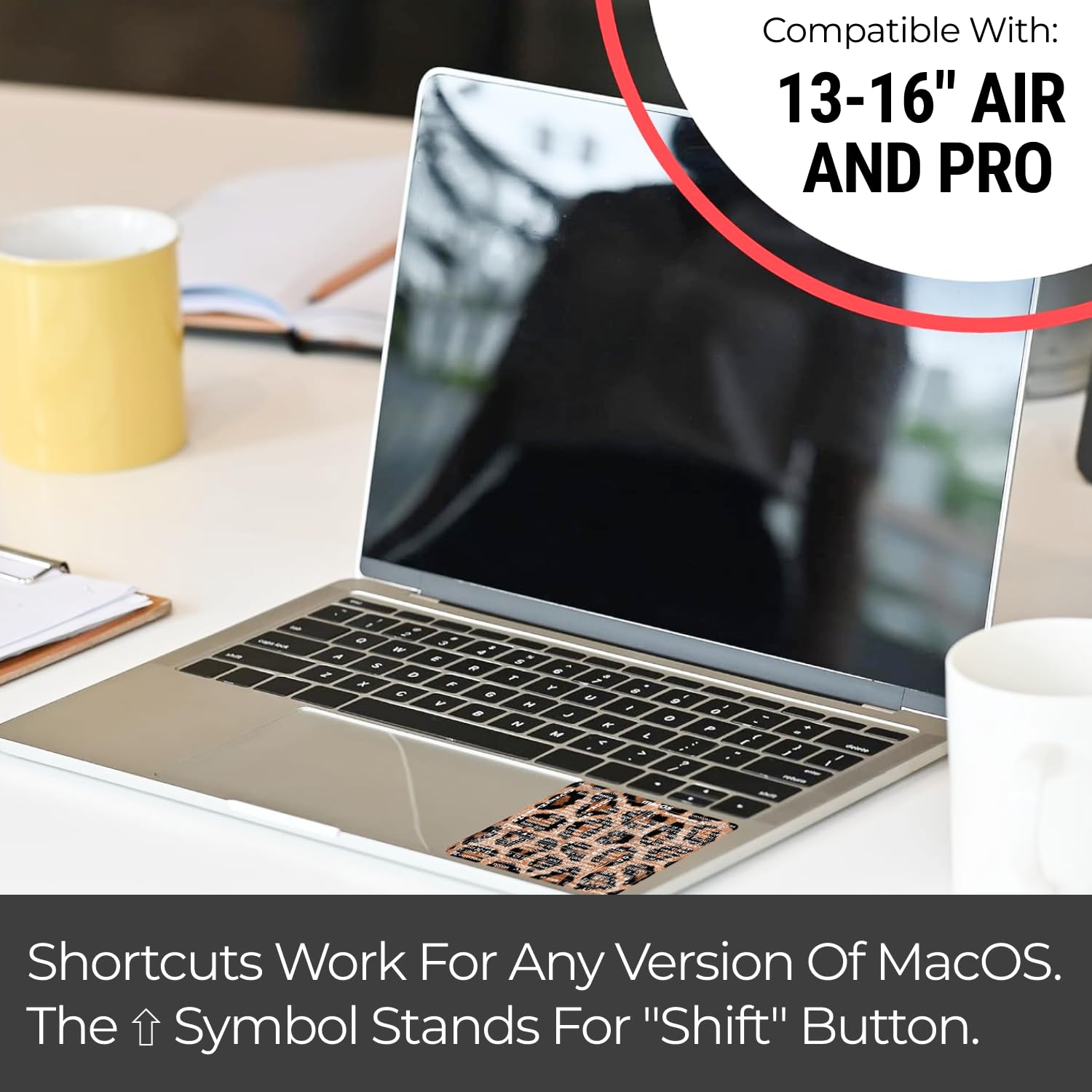 💻 Master Mac Shortcuts Instantly – Learn and use essential Mac commands without searching online. This sticker keeps the most important keyboard shortcuts visible on your device, making it easy to boost your skills and speed up everyday tasks. ⚠️ Note: The “⇧” symbol stands for the Shift key.