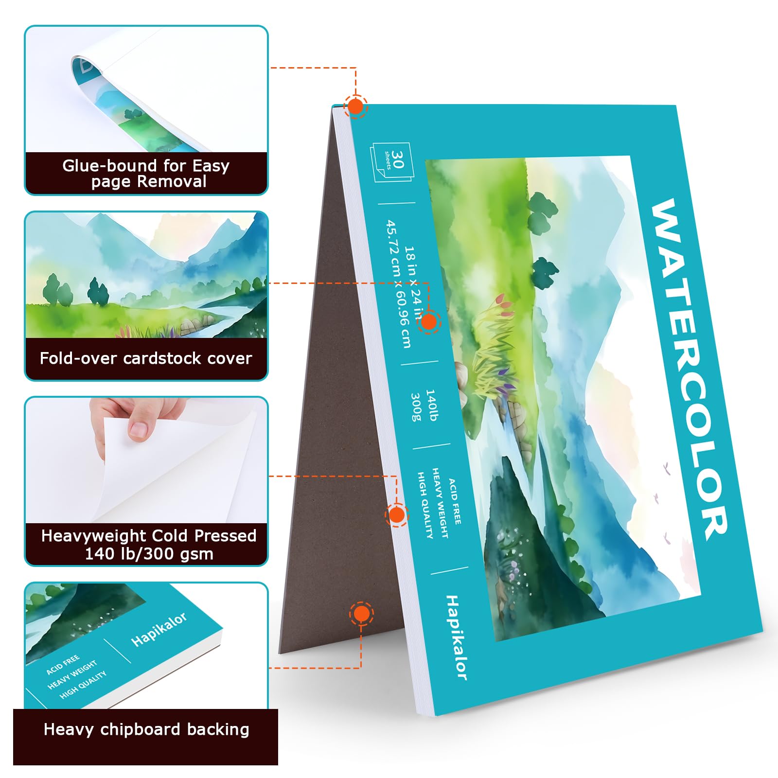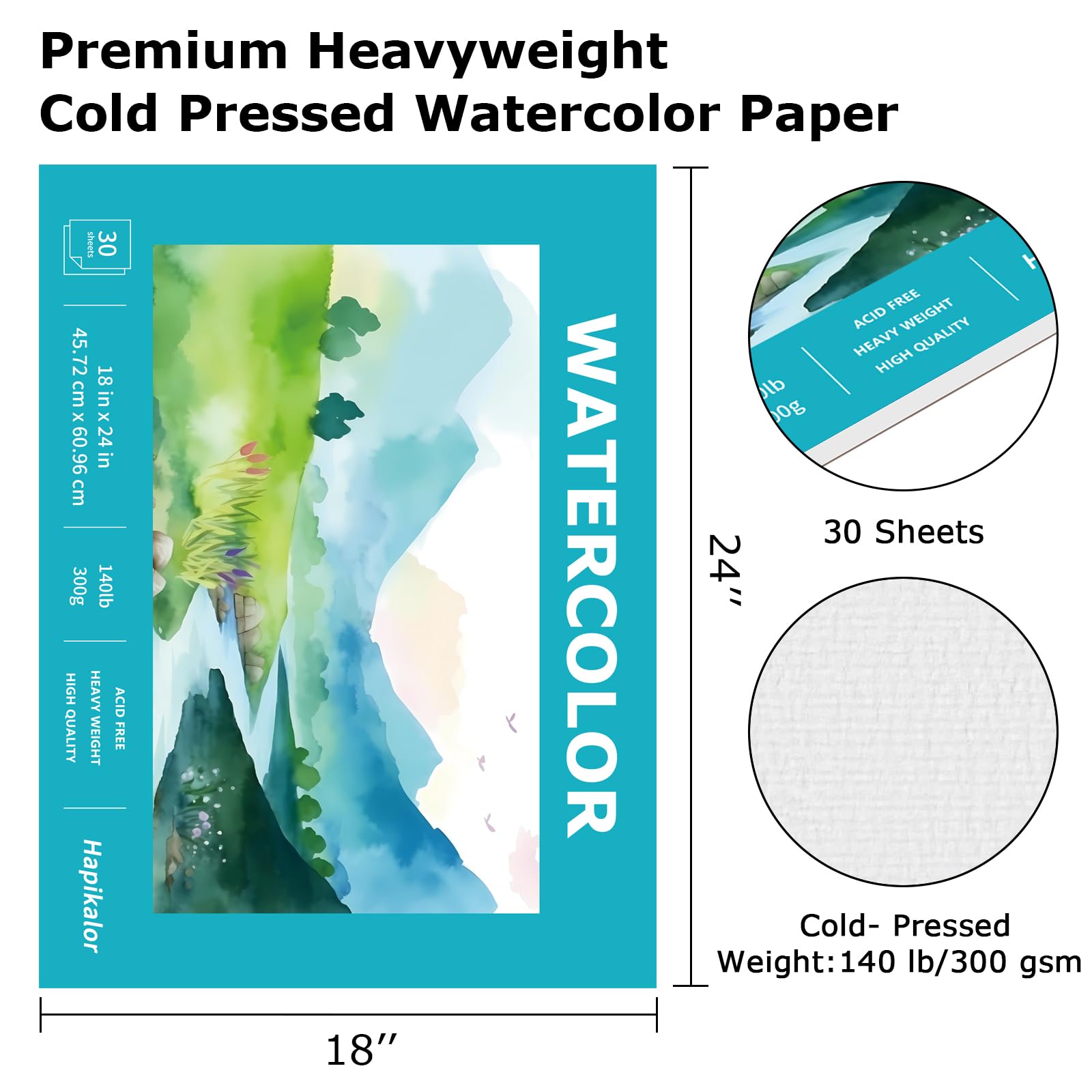 【Premium Heavyweight Cold Pressed Watercolor Paper】1 Pack of 18"x24" Professional Heavyweight Watercolor Pads. 30 sheets in each watercolorpad, total of 30 premium watercolor paper sheets at the affordable price, that are ideal for watercolor and mixed media techniques.
