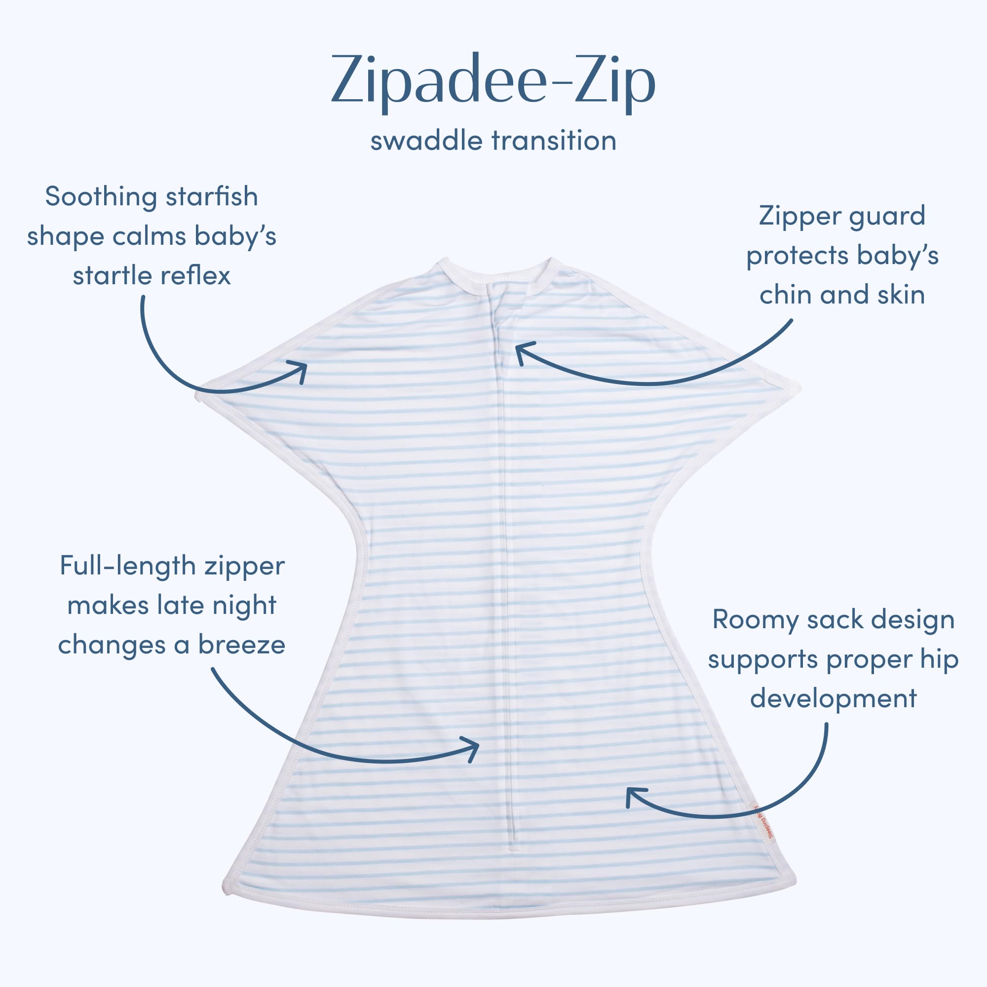 SleepingBaby Zipadee-Zip Transition Swaddle - Cozy Baby Swaddle Blanket with Zipper Convenience - Roomy Wearable Blanket for Easy Diaper Changes - Blue/Cream, Small (4-8 Month)