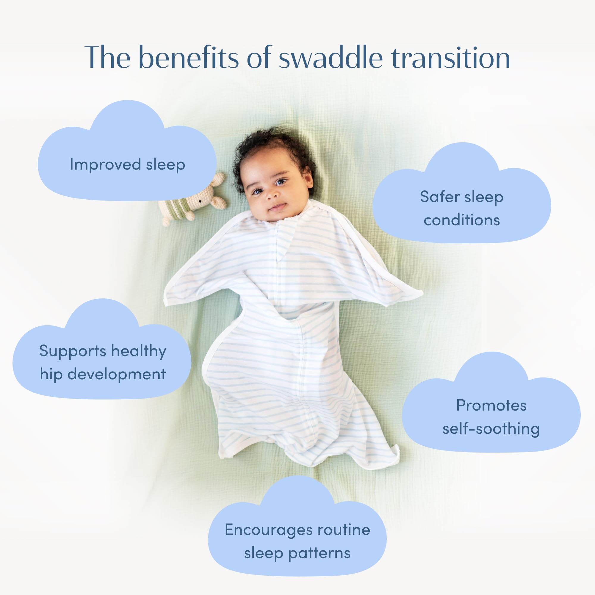 "Get the Best Fit for More Restful Sleep: To ensure a snug fit, we recommend sizing down in our transition swaddles if your little one is in between sizes. Sleeping Baby swaddles should have slight resistance when your baby lifts their arms"
