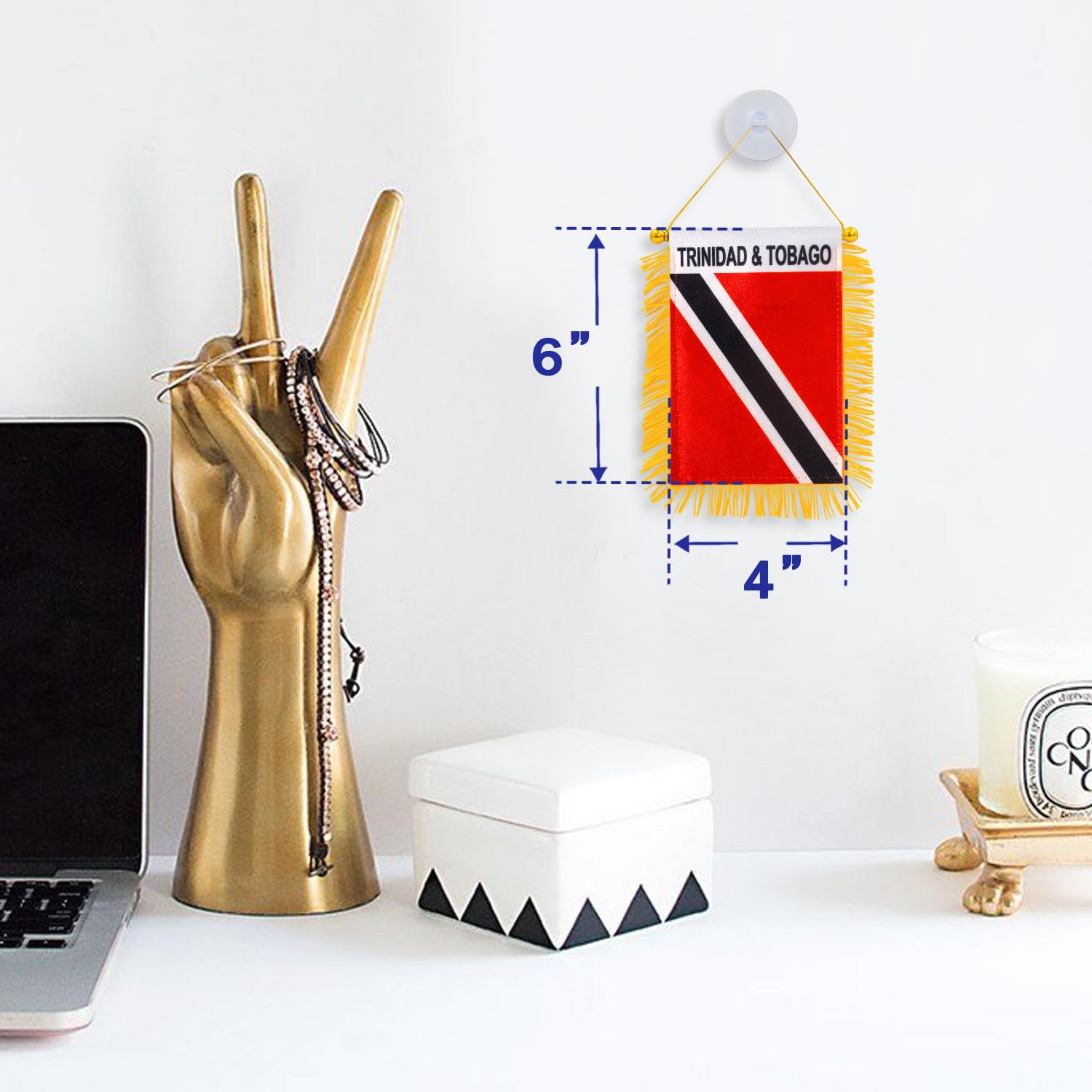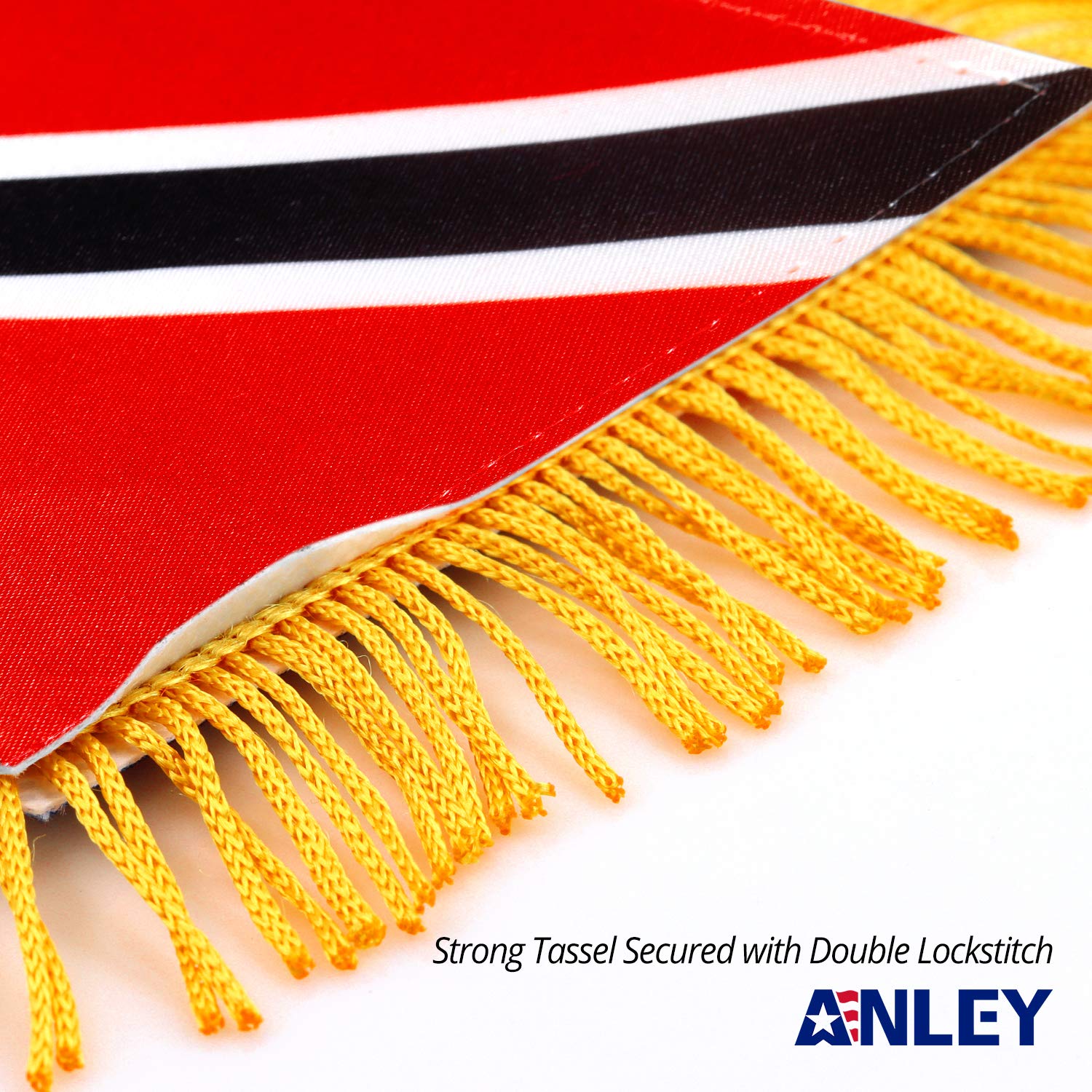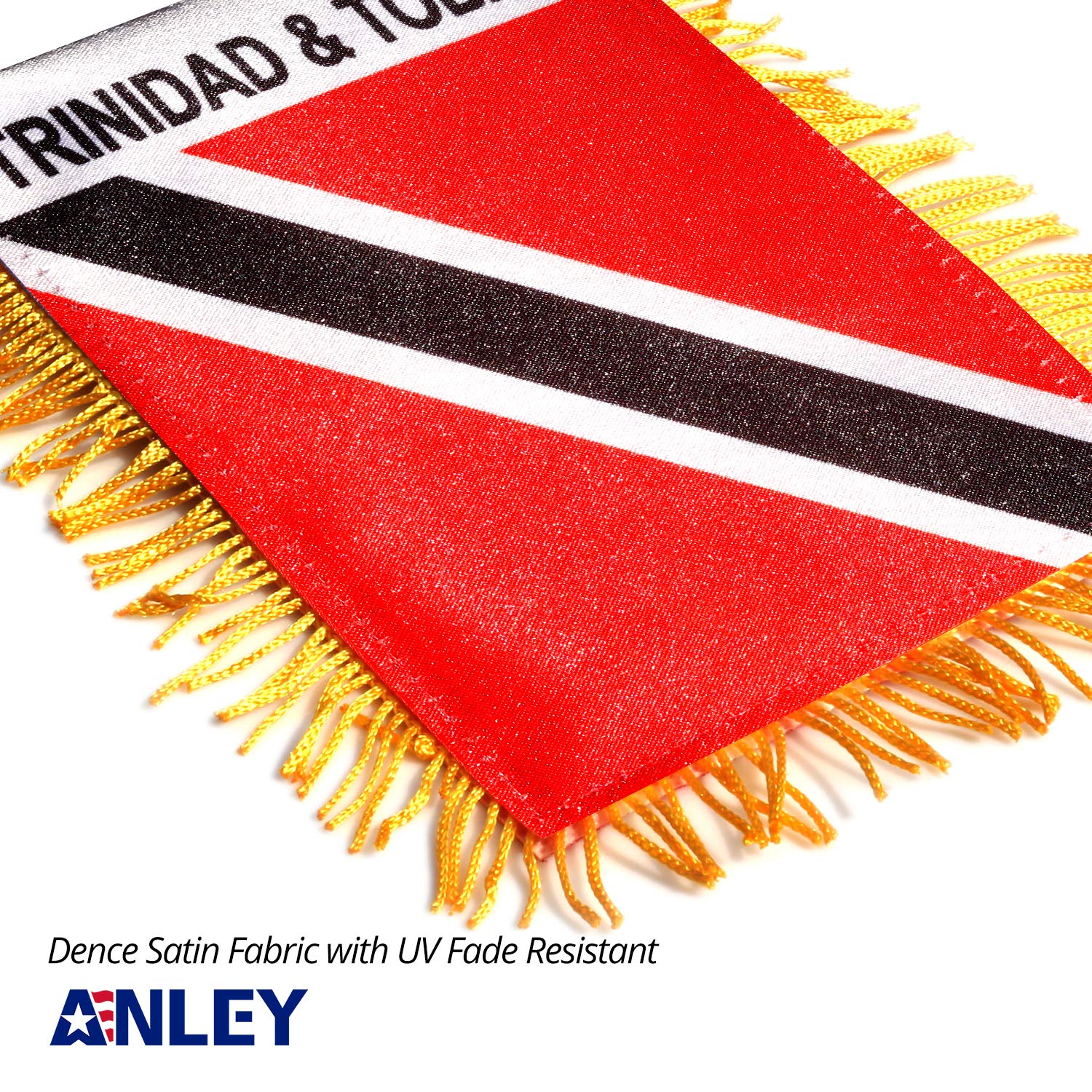 Anley 4 X 6 Inch Small Trinidad and Tobago Flag PREMIUM QUALITY Imported. Independently double stitched all around the edge, not easy to fall apart. FADE RESISTANT The color is bright and vivid, evenly-printed on both sides and without a color difference. EASY TO USE Can mount directly over the rear view mirror or with suction hanger. You can also hang it on the window in your home. Light & Compact With a size of 4" x 6", it perfectly matches with any vehicle. The sateen material looks bizarre in the sunshine. WARRANTY We stand behind our products! All items sold by ANLEY come with a 3-MONTH replacement warranty.