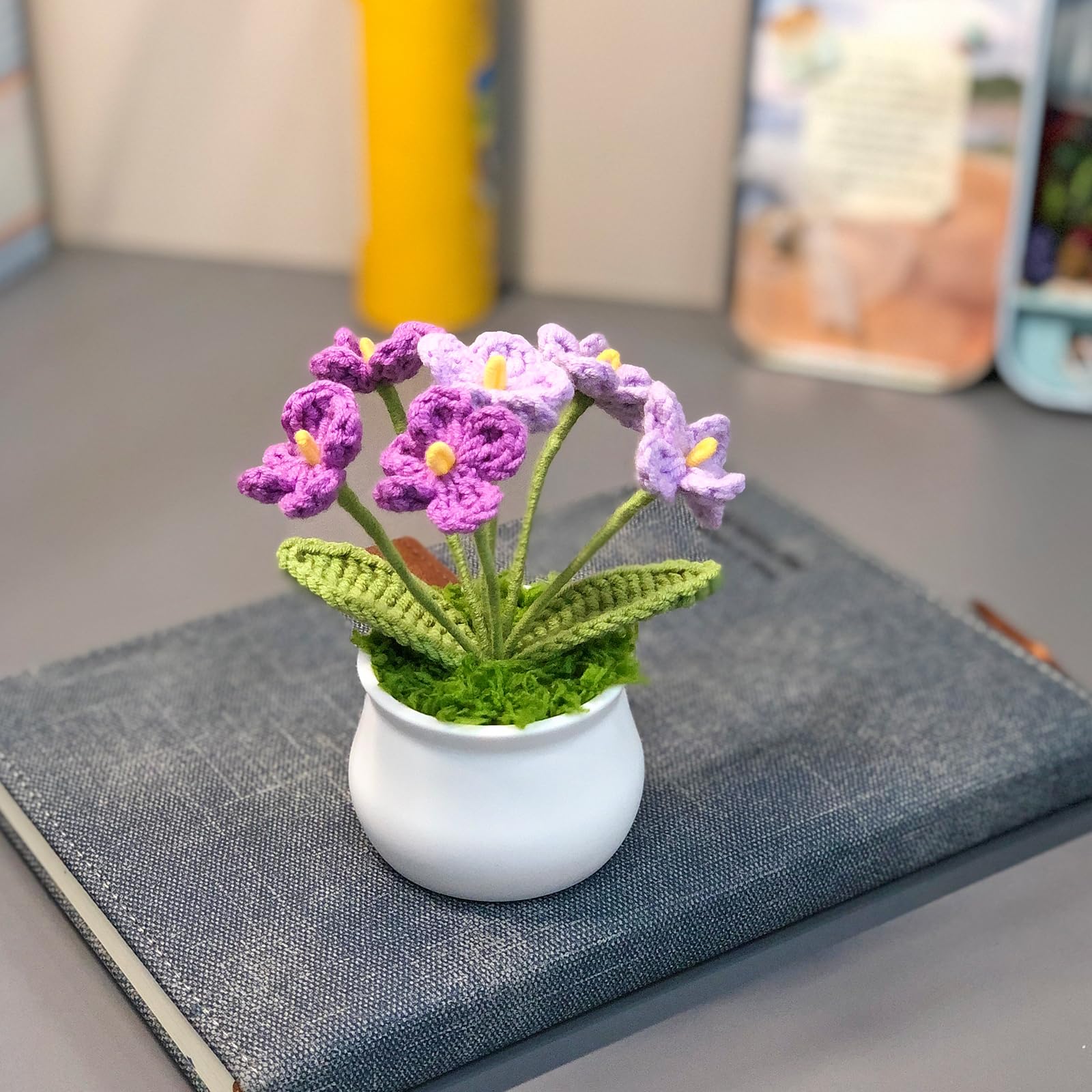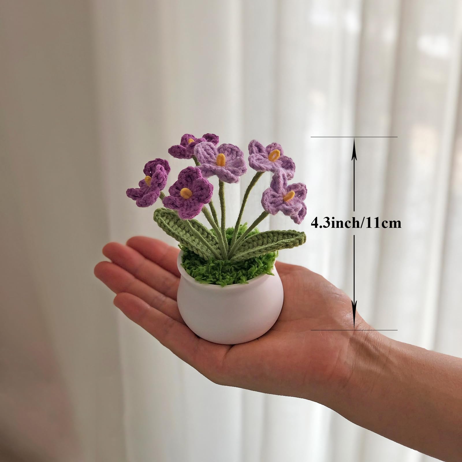 2.【Material】This crocheted potted flower uses high-quality yarn with accurate color, no pilling, and no fading, making it suitable for long-term preservation.The pot is made of plastic.The pot measures 1.57 inches (4cm) in height and 1.97 inches (5cm) in width.