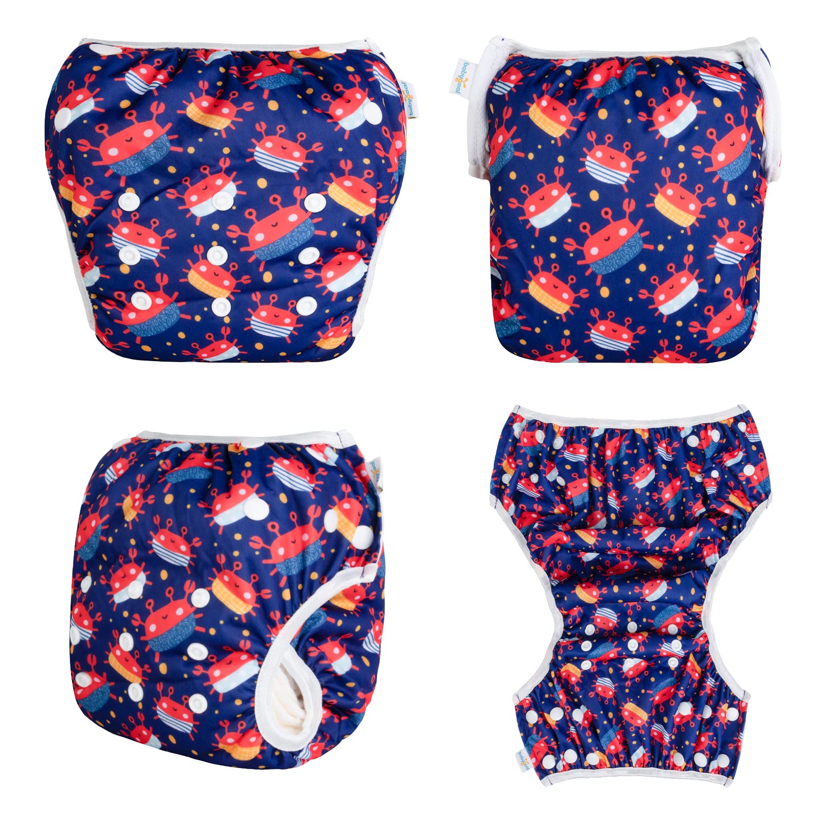 Reusable & Water-proof: These reusable swim diapers are designed to hold solids, not pee. They can be fully machine washable and will get dried faster by the washing machine. The outer layer is made of polyester with waterproof and breathable TPU.