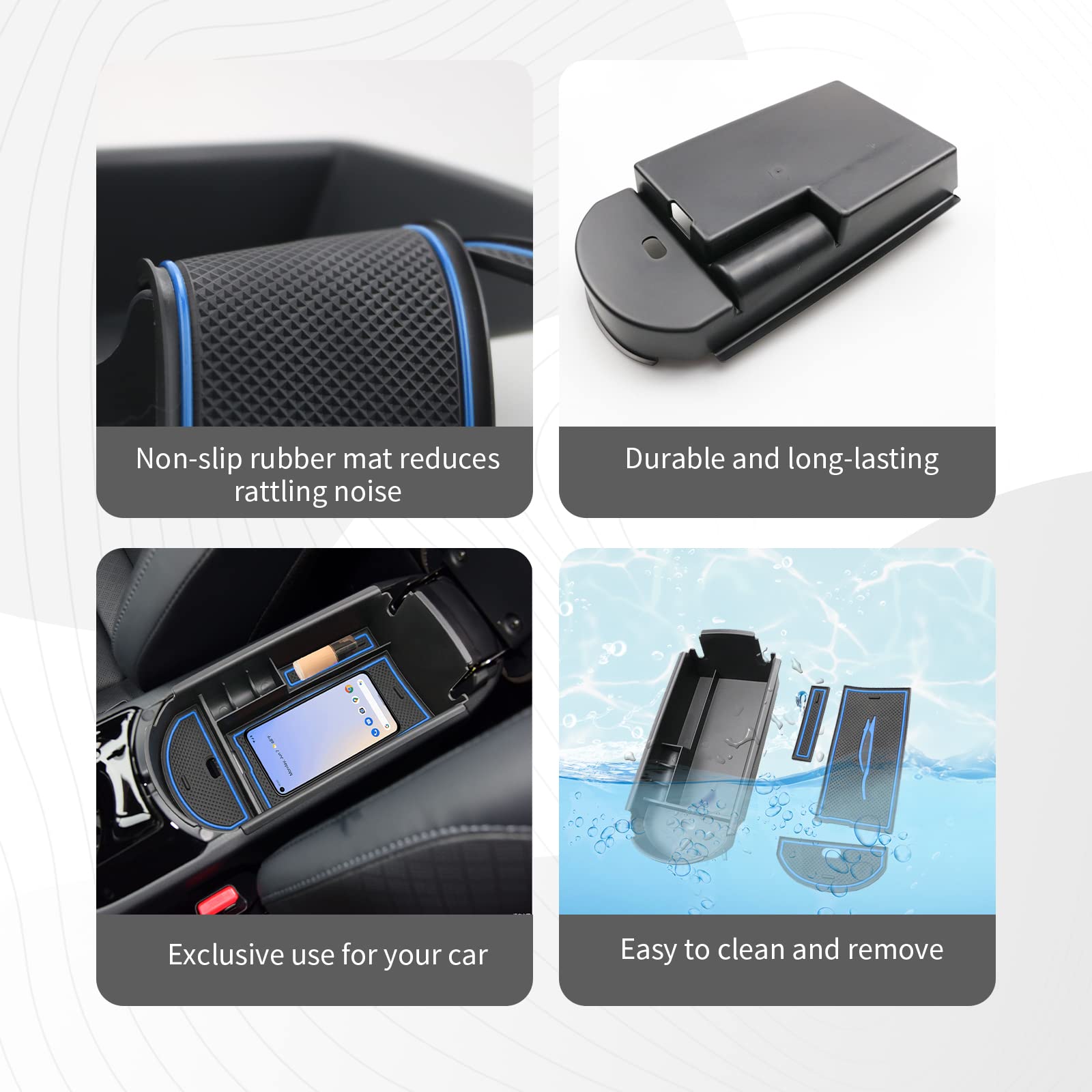 【Anti Slip Mats】 The 2022 CHR center console organizer tray comes with textured rubber mats to keep the items from sliding and rattling in the organizer. Easy to install, no need to drill, just drop-in to the console