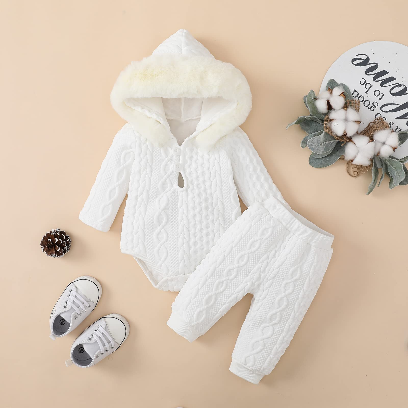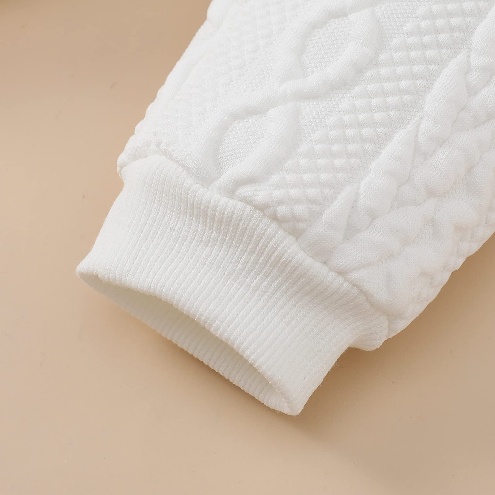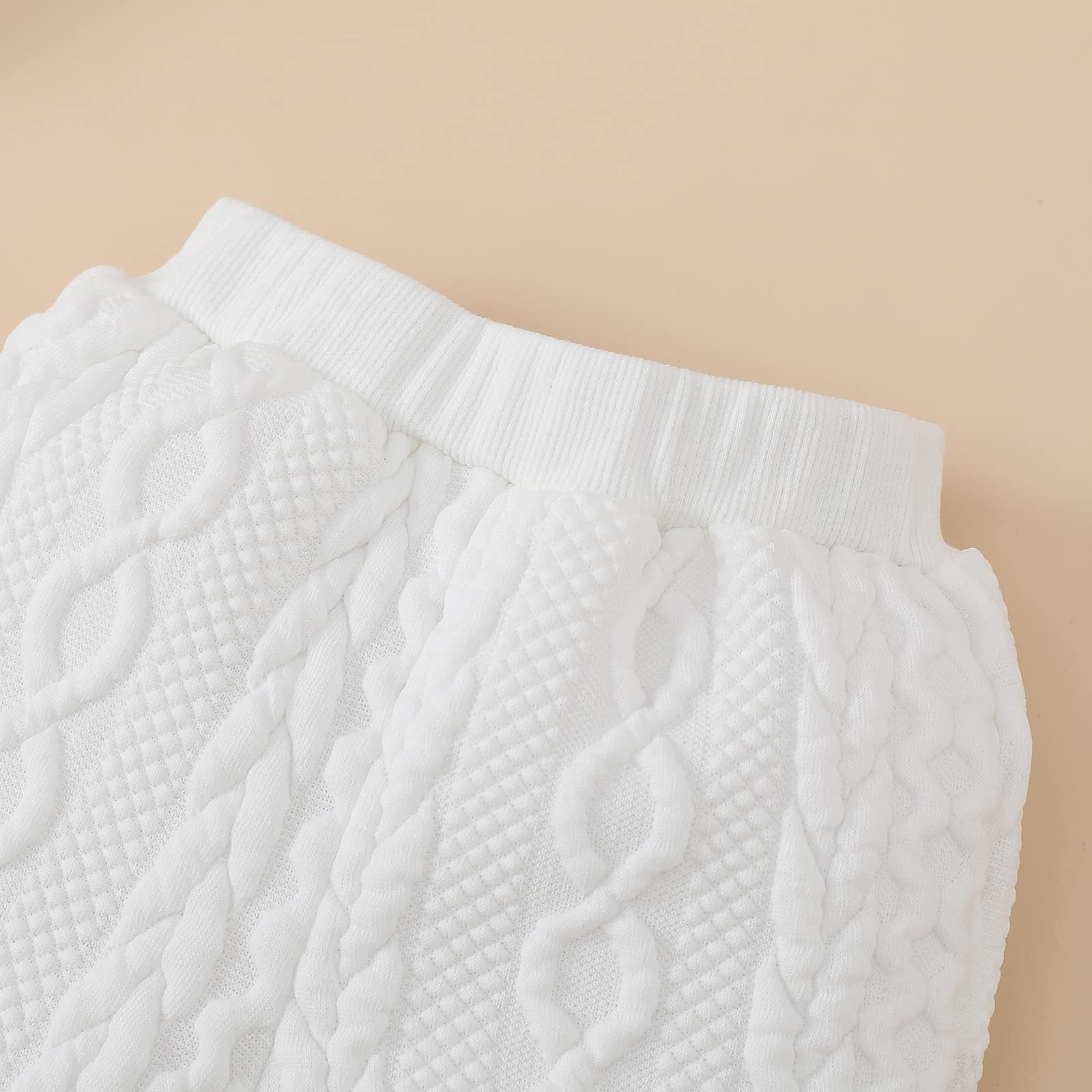 Description Size Description: Size 0-3M, Romper Length: 14.96", Bust: 19.69", Waist: 14.17“, Pants length: 13.39”. Recommended Age: 0-3 Months. Size 3-6M, Romper Length: 15.75", Bust: 20.47", Waist: 14.96“, Pants length: 14.57”. Recommended Age: 3-6 Months. Size 6-9M, Romper Length: 16.54", Bust: 21.26", Waist: 15.75“, Pants length: 15.75”. Recommended Age: 6-9 Months. Size 9-12M, Romper Length: 17.32", Bust: 22.05", Waist: 16.54“, Pants length: 16.93”. Recommended Age: 9-12 Months. Size 12-18M, Romper Length: 18.31", Bust: 22.83", Waist: 17.32“, Pants length: 18.5”. Recommended Age: 12-18 Months. Package include: 1 piece romper,1 pants.