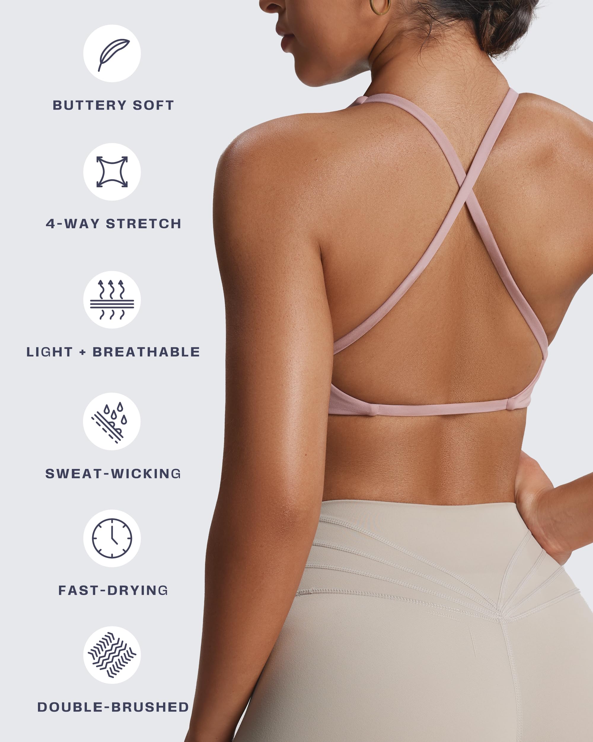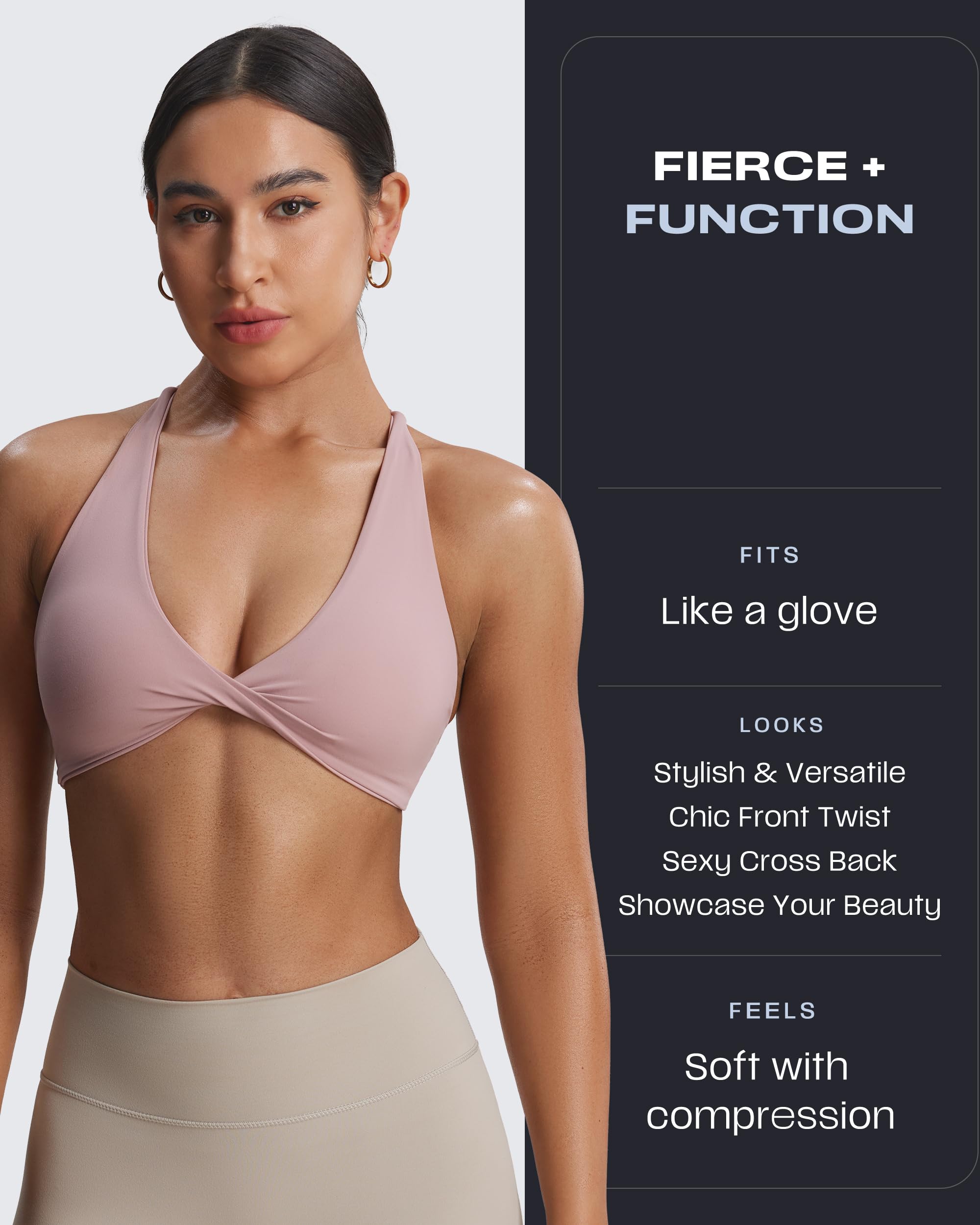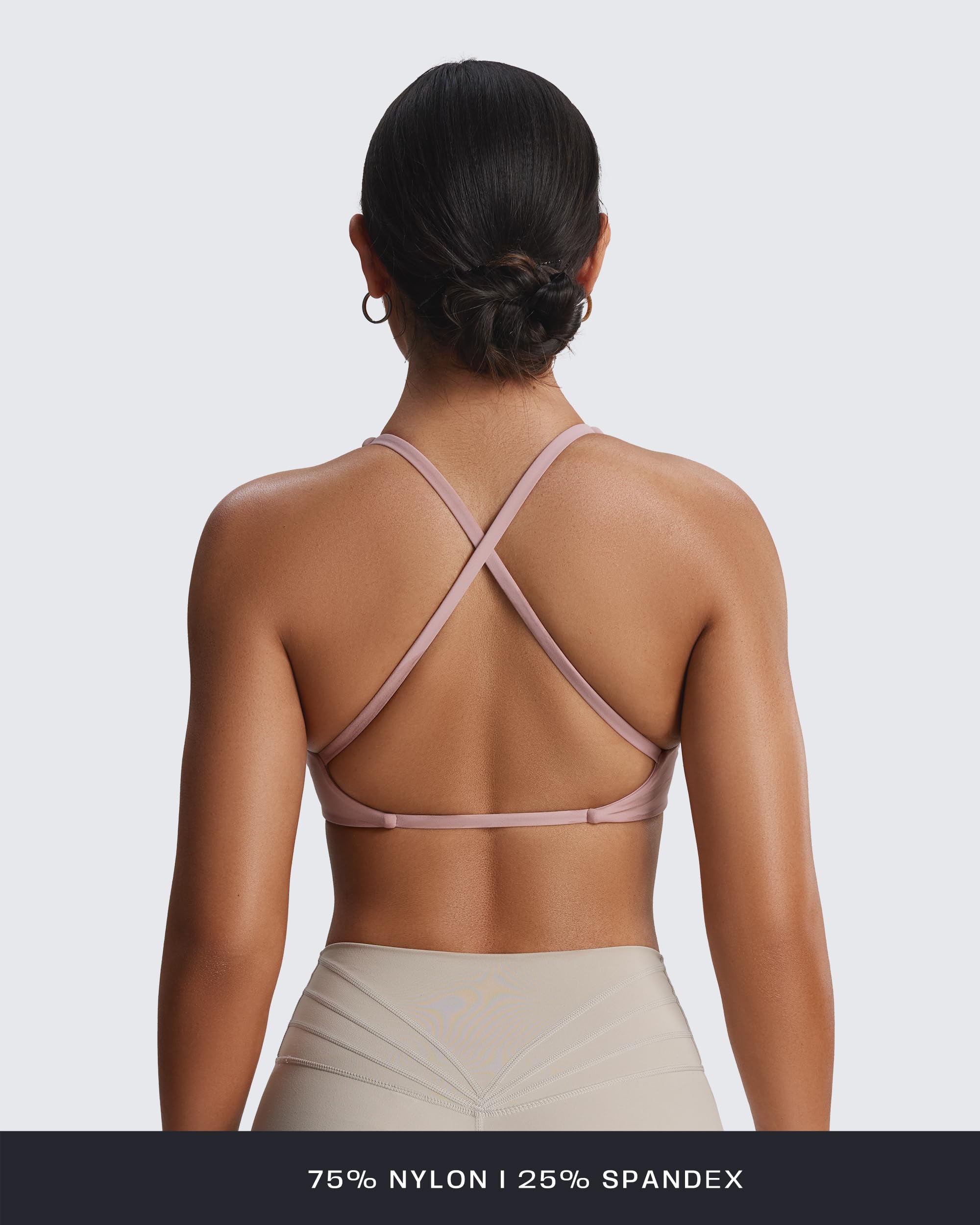The Sienna twist womens sports bra featuring thin crossed back straps and padding, despite small straps, it doesn’t bite into your traps and cause neck pain