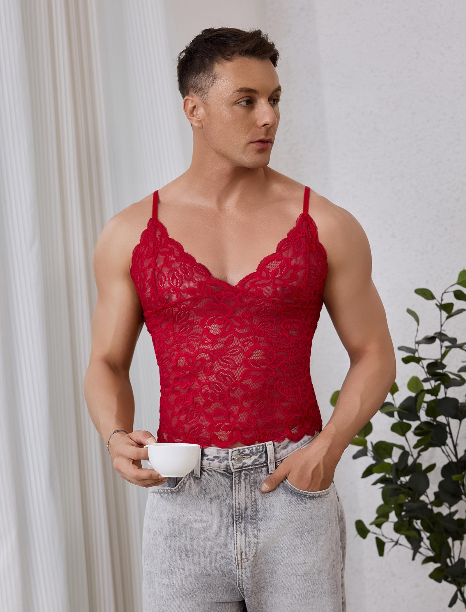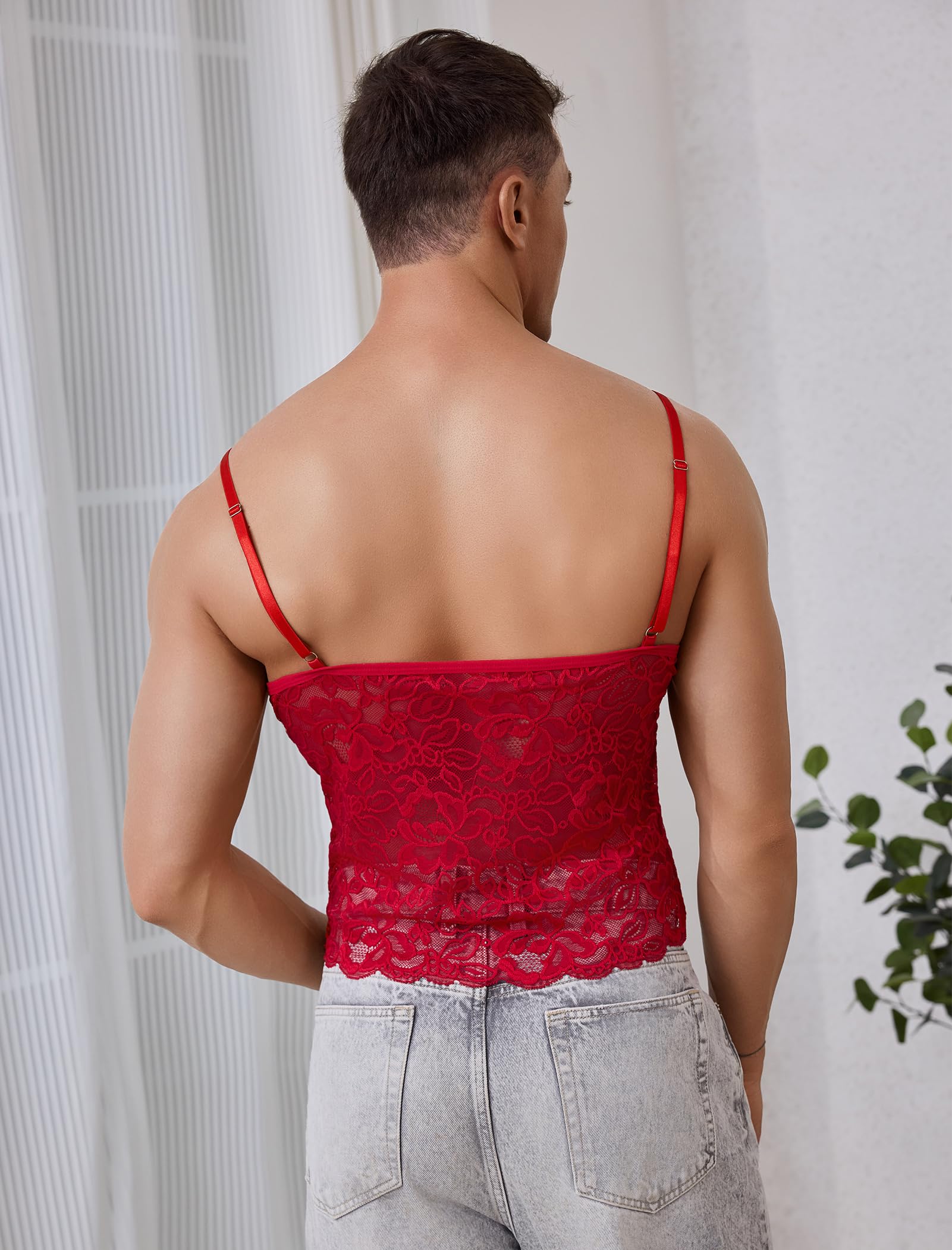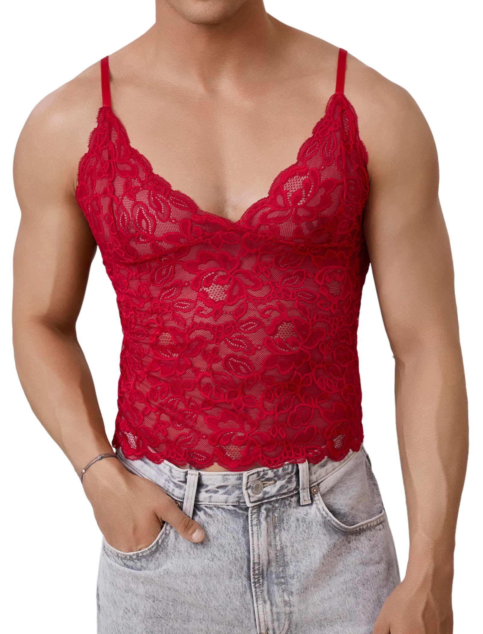 Men's Sissy Lingerie Lace Cami Undershirt: Sissy lace top for men sheer lace lingerie sheer lace cami top for men crossdressing lingerie underwear spaghetti strap sheer tank camisole lace top sexy see through lace muscle shirt for men,sissy lace cami top for men crossdressing.